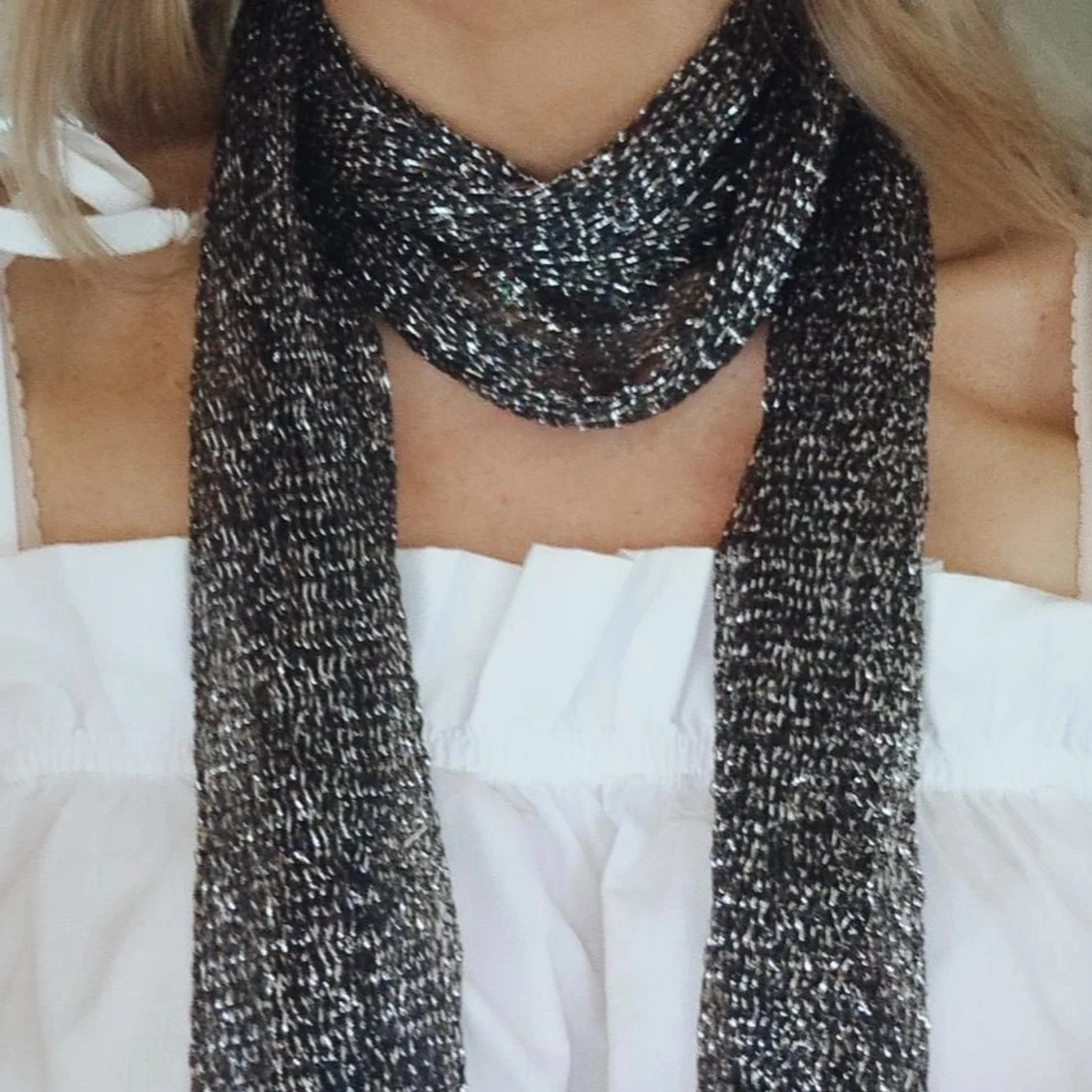 Tunn glittrig sjal 90 / 2000 tal. Fint skick. Svart silvrig glittrig