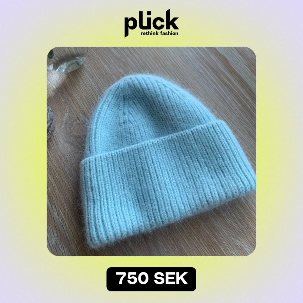 Ljusblå oanvänd mössa i alpacka ull. Varm och skön.