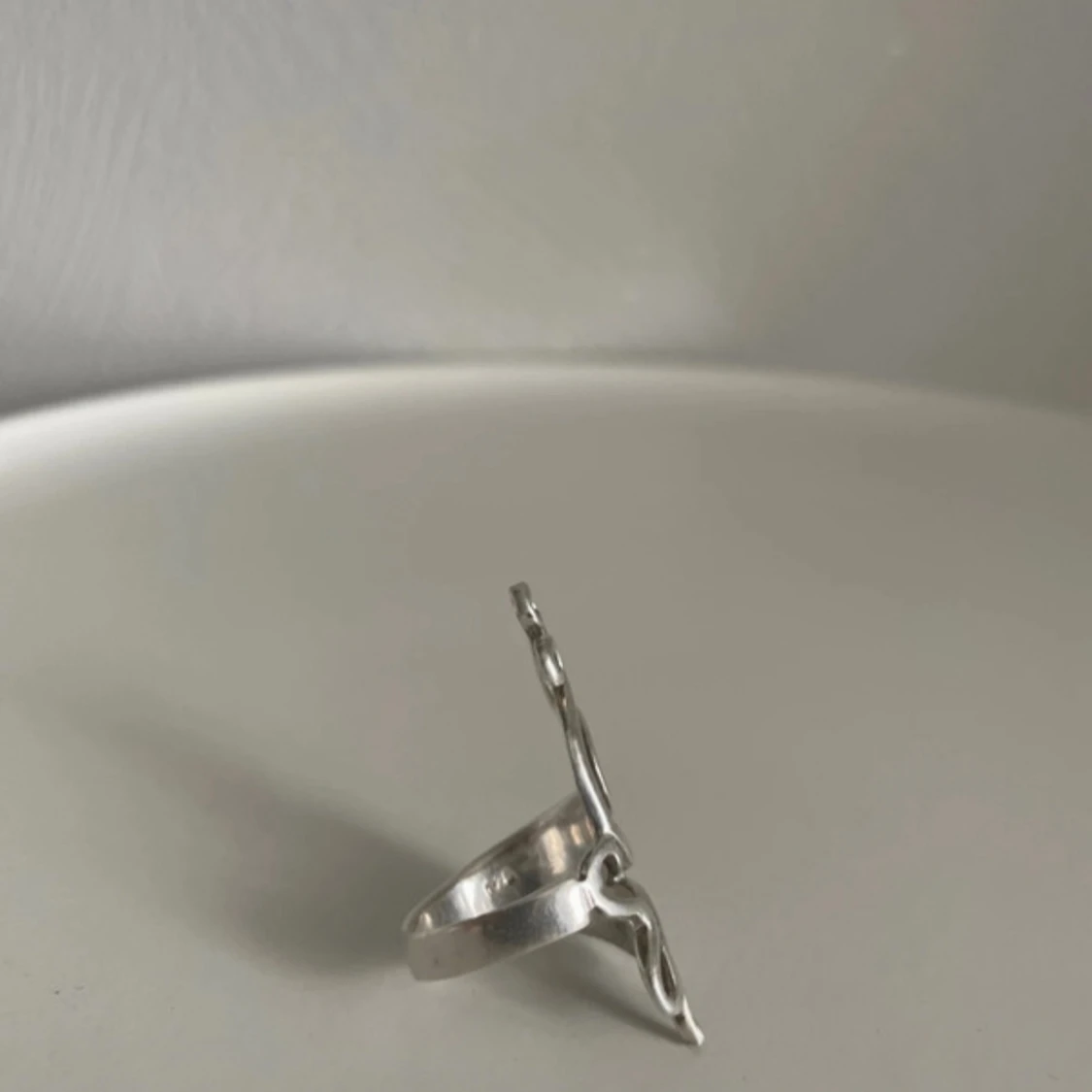 Säljer en gaffelring/fork ring som är i äkta silver (925) Detta är en ovanlig sorts ring och den är en gammal modell. Värdet har kollats upp noggrant på den och det ligger runt 1000 kr