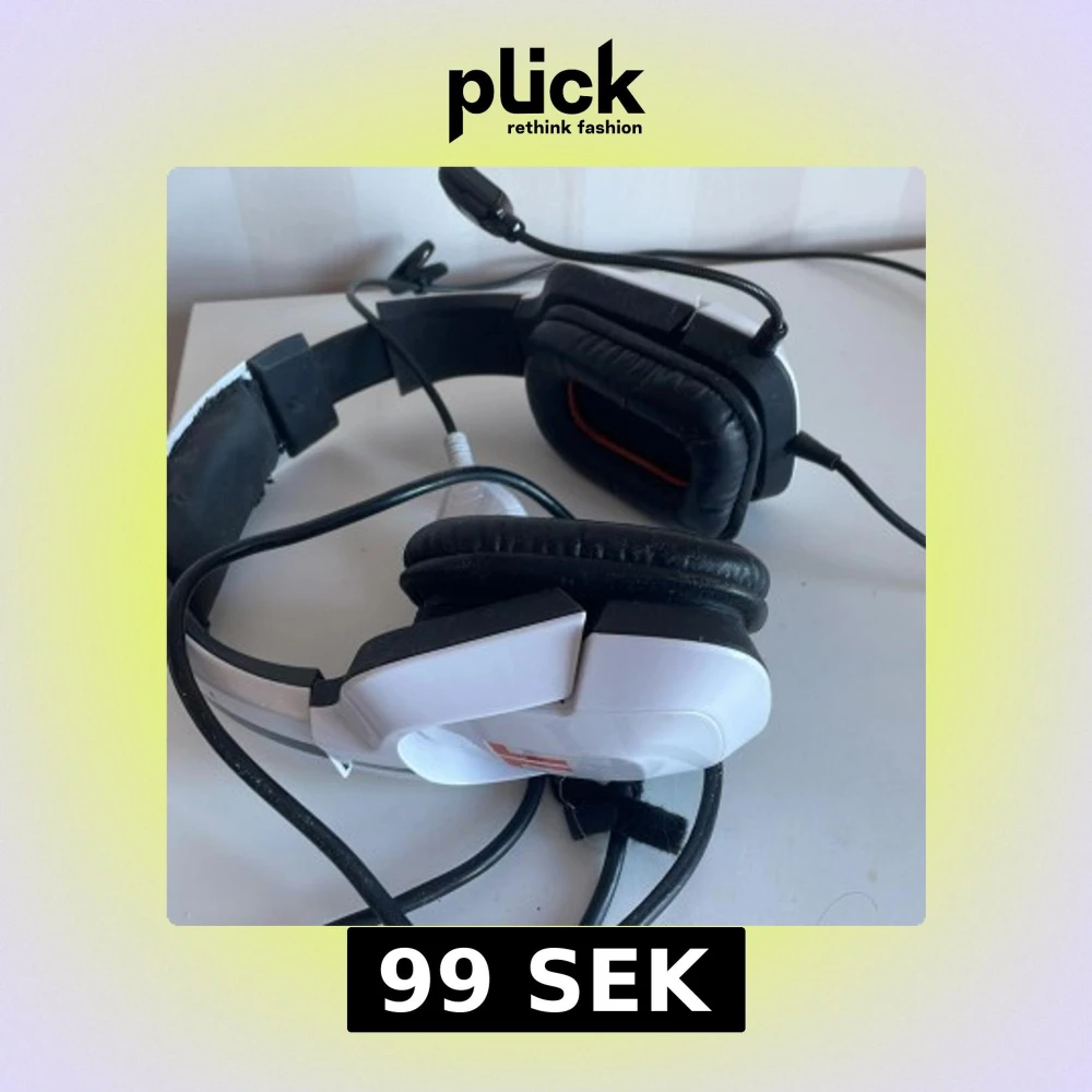 Säljer ett gamingheadset i svart och vitt med inbyggd mikrofon. Headsetet har vadderade öronkuddar för extra komfort och ansluts via USB. Perfekt för långa spelsessioner.