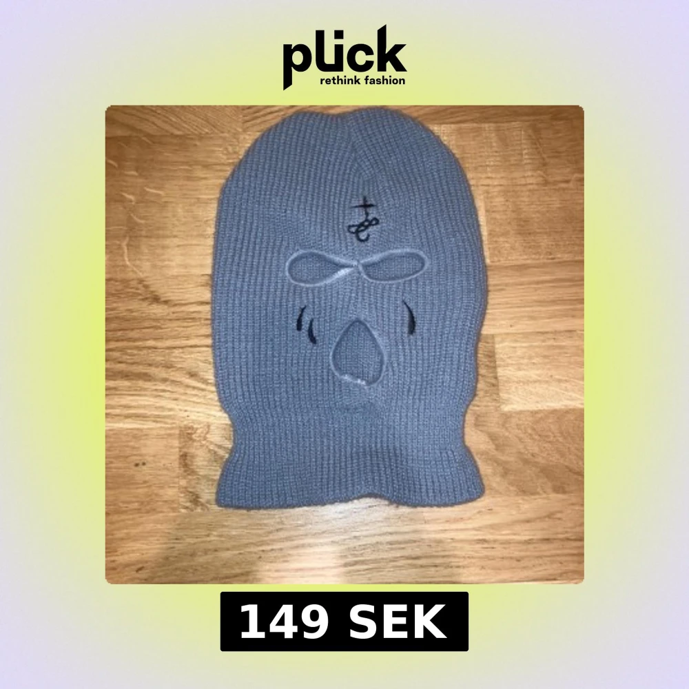 Säljer en nästan oanvänd grå stickad balaclava. Masken har tre hål för ögon och mun, och är stickad för extra komfort och stil. Perfekt för kalla dagar eller när du vill sticka ut.