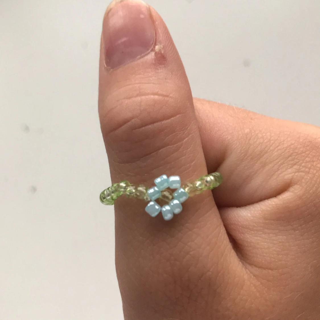 Finns bara blå och är ganska stor men jag har ganska små fingrar men jag kan ändå ha den på tummen👍🏻 jätte fin kostar 10kr 🌸