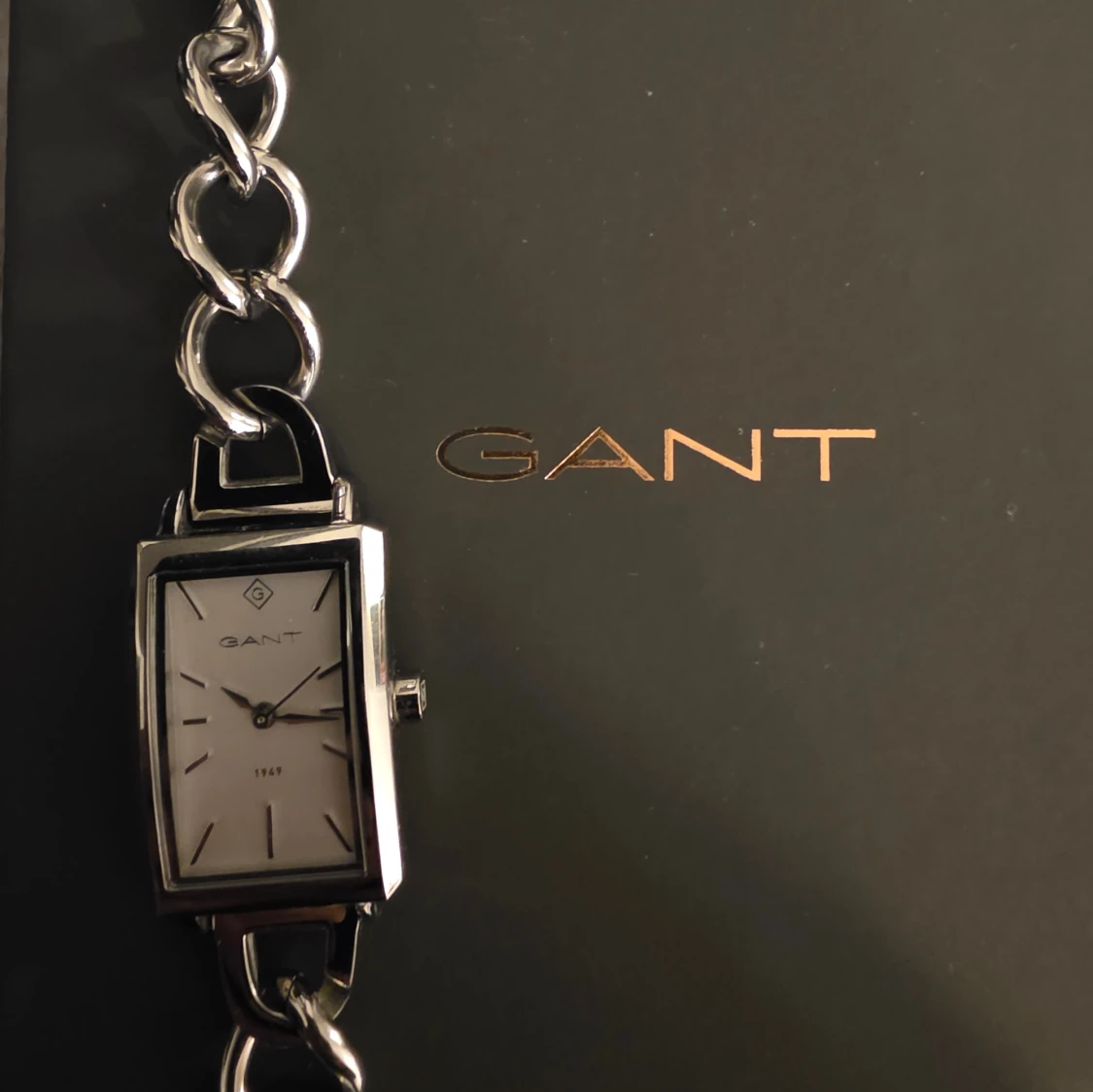Snygg Gant Utica klocka med rektangulärt ur och länkarmband i blankt rostfritt stål. Urtavlan är vit med minimalistiska silverfärgade markeringar och Gant-logga. Länken har stora kedjelänkar som ger en cool och modern vibe. Perfekt accessoar för dig som gillar stilrena detaljer.