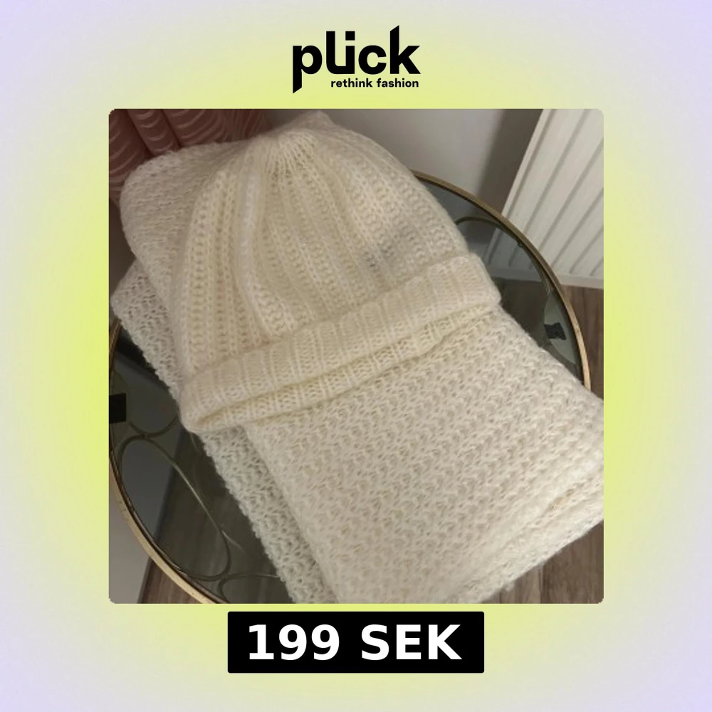 Mysig vit stickad mössa och halsduk som är ribbstickade från Gina Tricot.