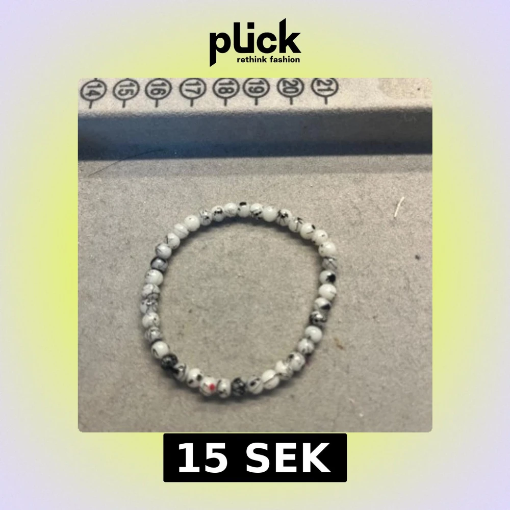 Stilrent armband med små vita pärlor och svarta marmorliknande detaljer. Pärlorna är trädda på en elastisk tråd vilket gör det enkelt att ta på och av. Perfekt accessoar för att ge din outfit en cool touch. Handgjort!