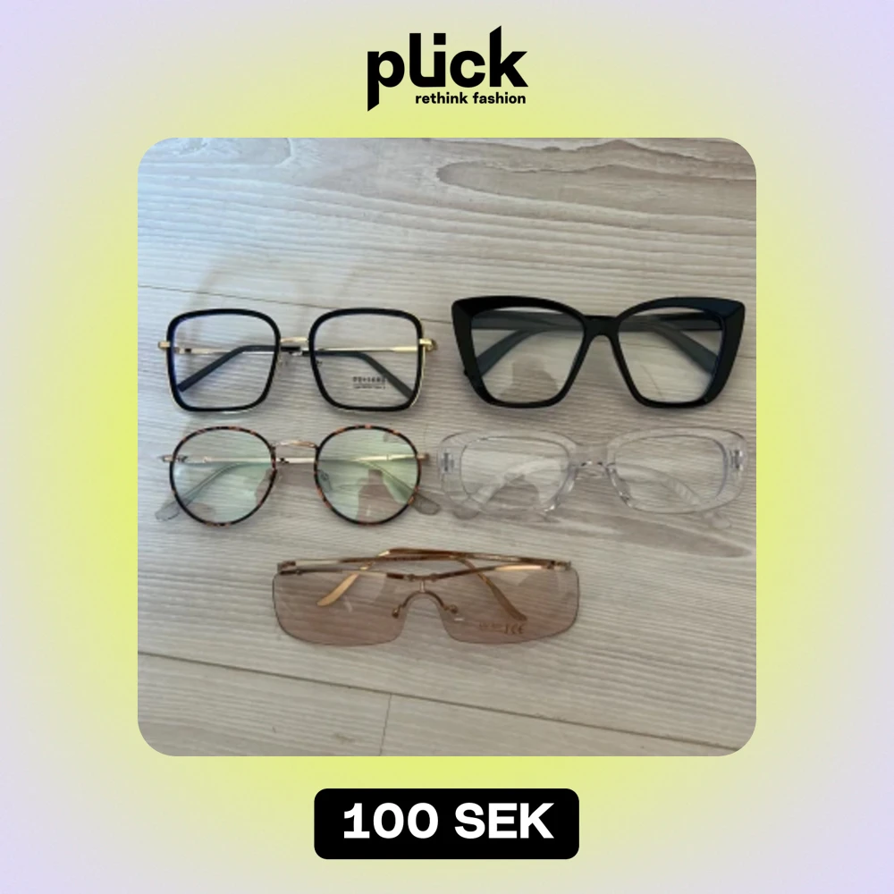 Glasögon utan styrka, 3 st är bluelight (skyddar mot ljus på datorskärm/mobil) Dem längs ner (guld/bruna) är från na-kd. Alla oanvända! ✨ ett par för 30 kr, alla för 100 kr