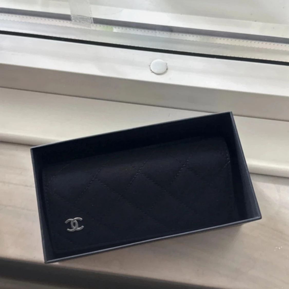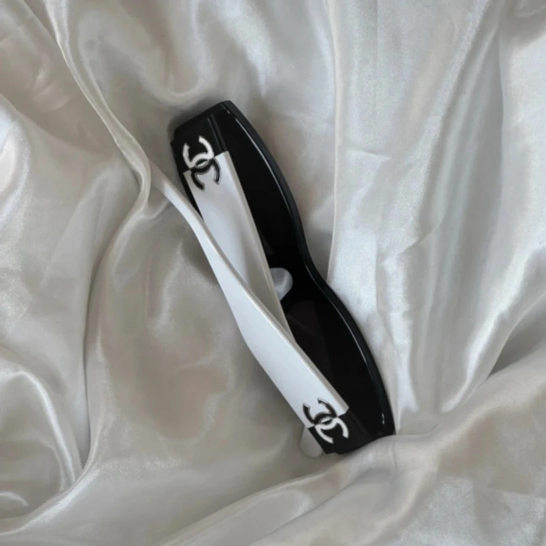 Säljer ett par riktigt snygga Chanel-solglasögon i svart och vitt med chunky bågar och tydlig logga på sidorna. Modellen är rektangulär och ger en cool statement-look. Kommer med originalbox & fodral.