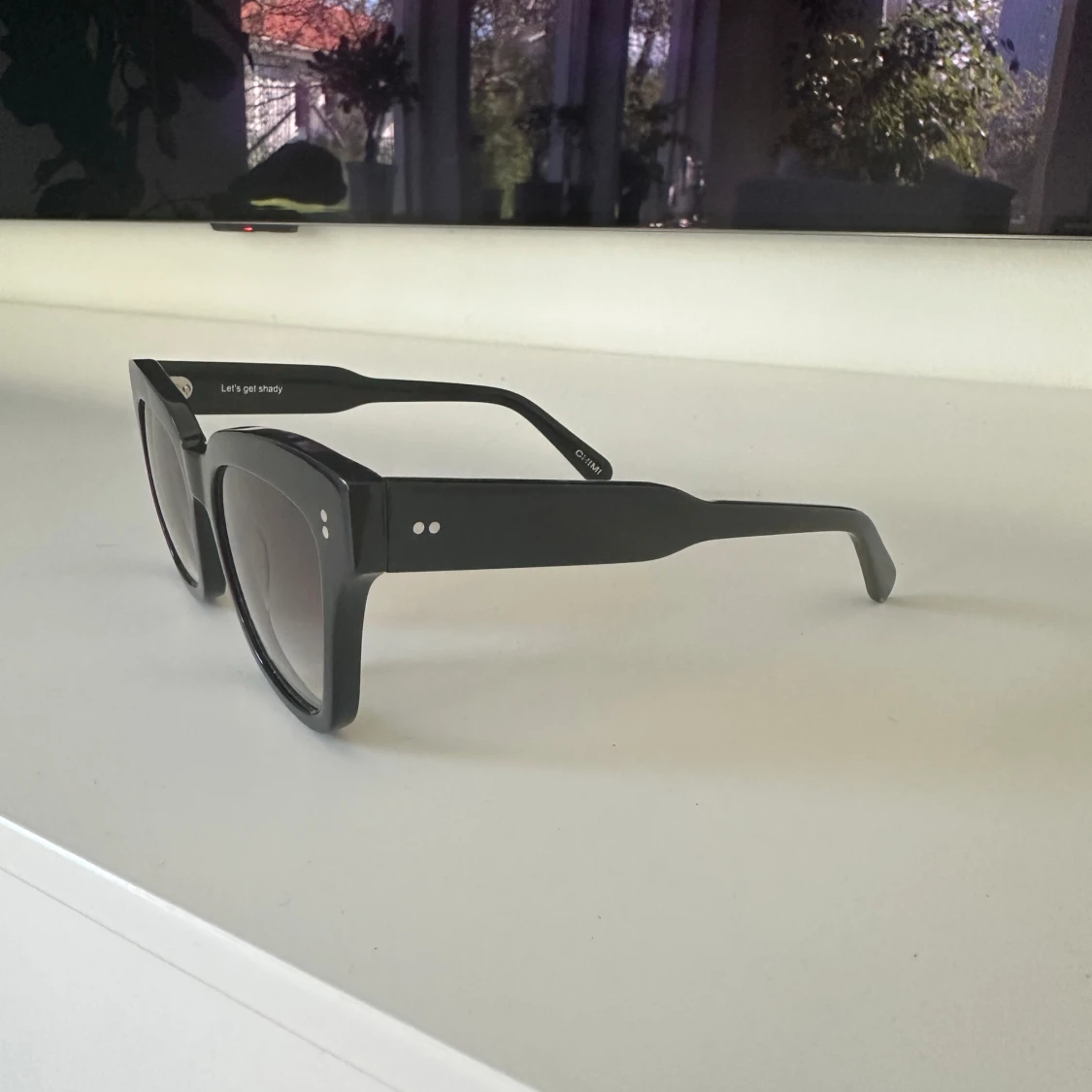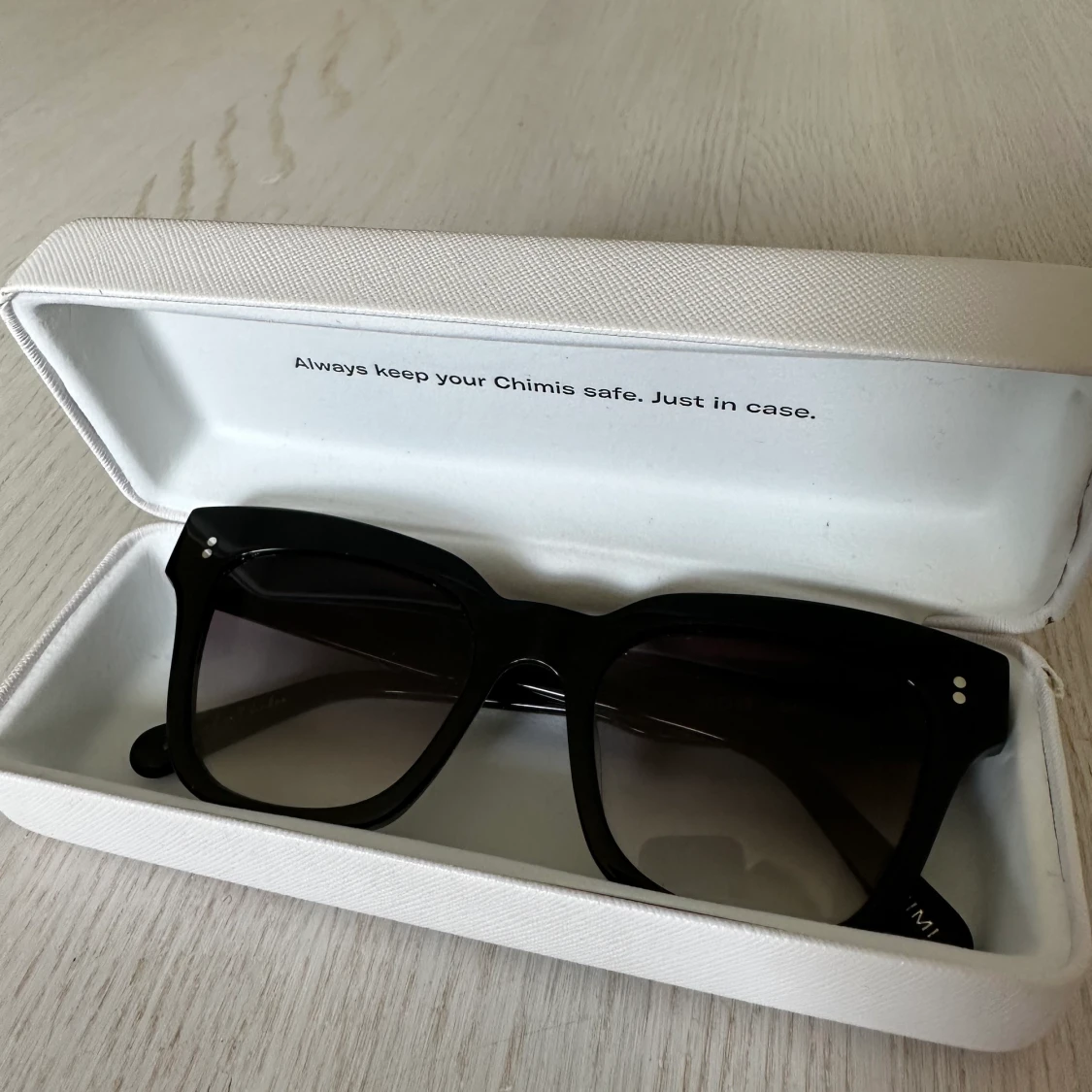 Chimi solglasögon. Fodralet är delvis trasigt. Solglasögonen är i gott skick med lite små repor.