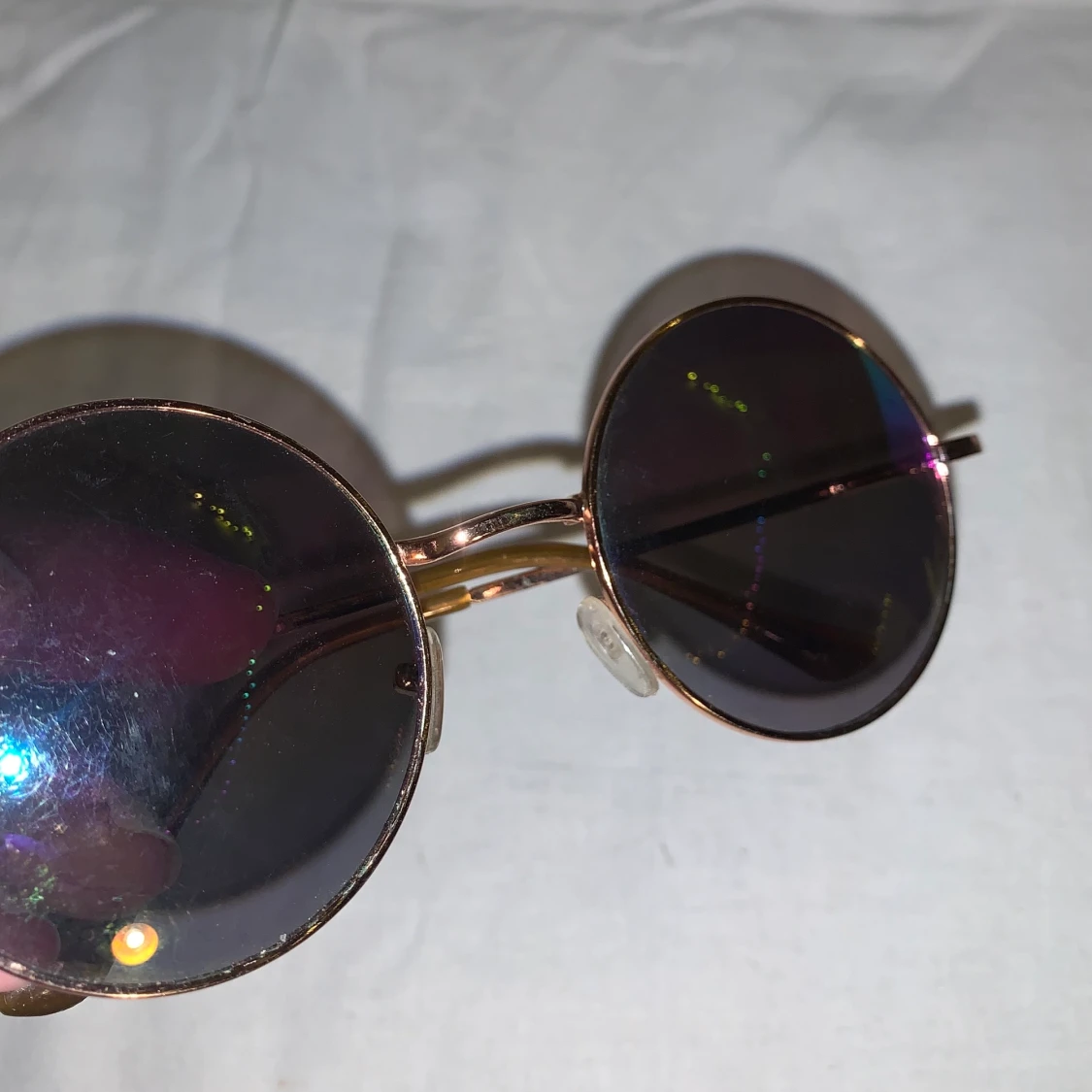 Guldiga solglasögon med regnbågsglas 🌈 Dom är använda så lite repiga, men det är inget man tänker på!