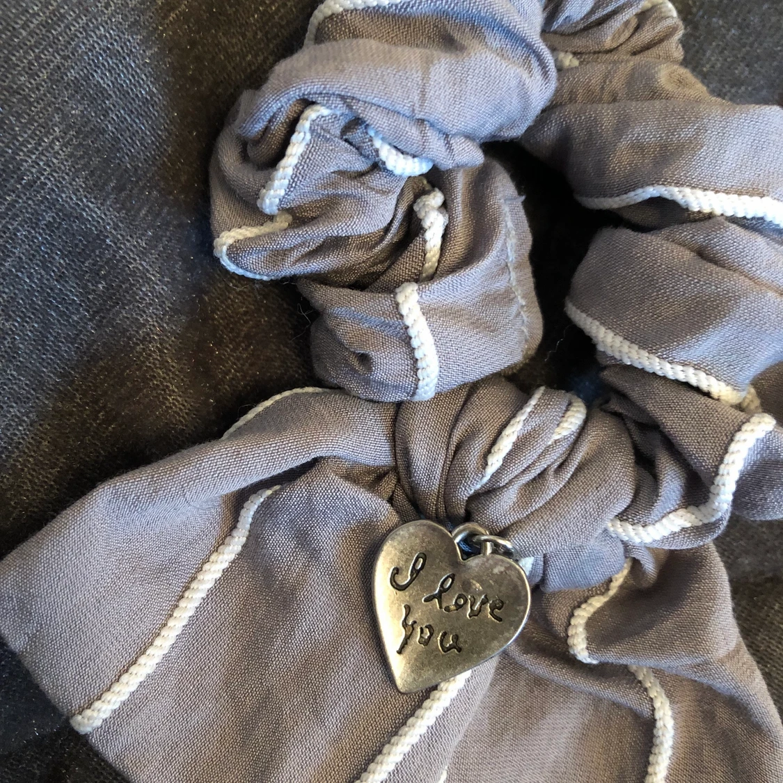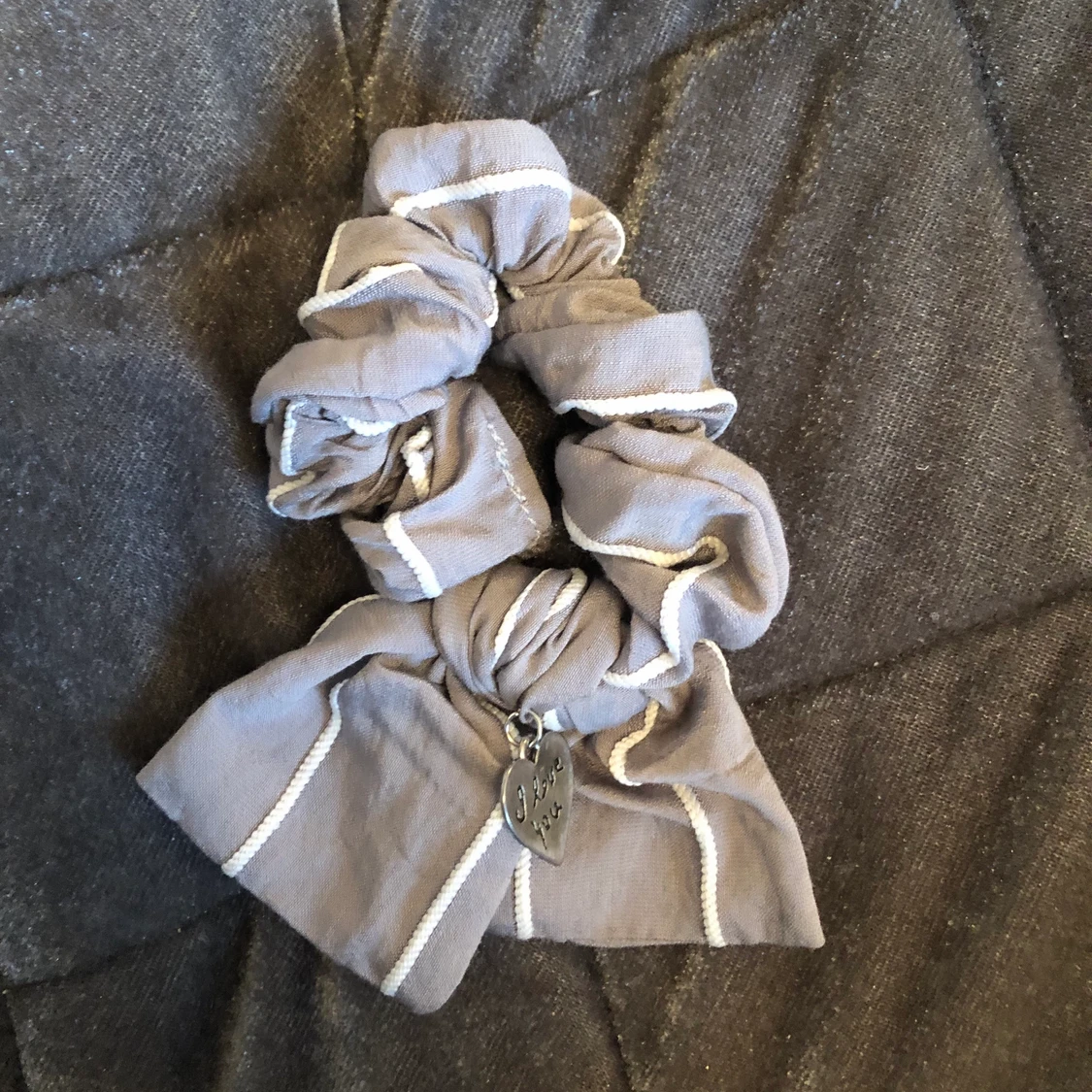 Grå shrunchie med berlock. Använd typ 2 ggr!