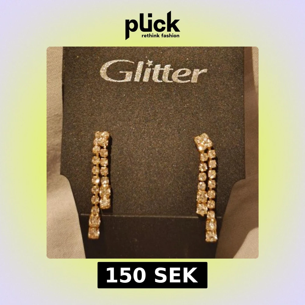 Säljer ett par glittriga örhängen från Glitter i guldton med två rader av gnistrande stenar. Perfekta för att ge din look extra bling! Lätta att bära och riktigt snygga till en cool outfit.