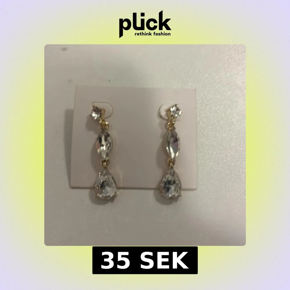 Snygga örhängen med tre stora, gnistrande kristaller i olika former på rad. Infattningarna är i guldton och designen är elegant och iögonfallande. Perfekta för dig som vill sticka ut med lite extra bling.