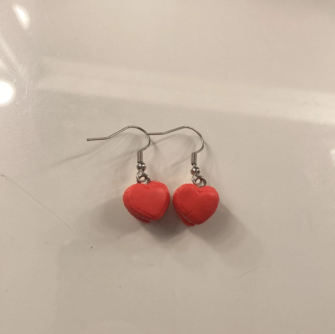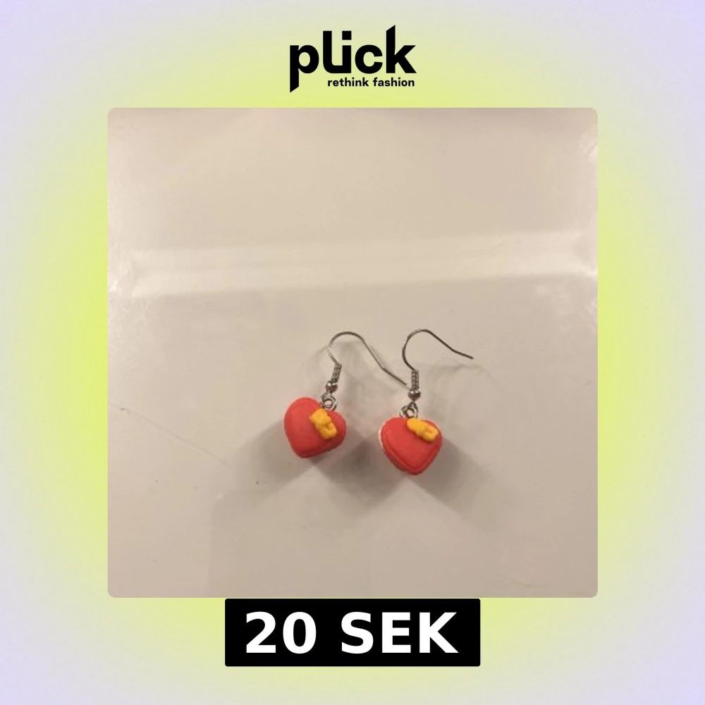 Söta handgjorda örhängen i form av kakor som ser ut som hjärtan med små gula rosetter. Perfekta för att ge en lekfull och färgglad touch till din stil. Hängande modell med metallkrok. Medföljer två stycken ploppar, jag rengör alltid örhängena innan jag skickar!!