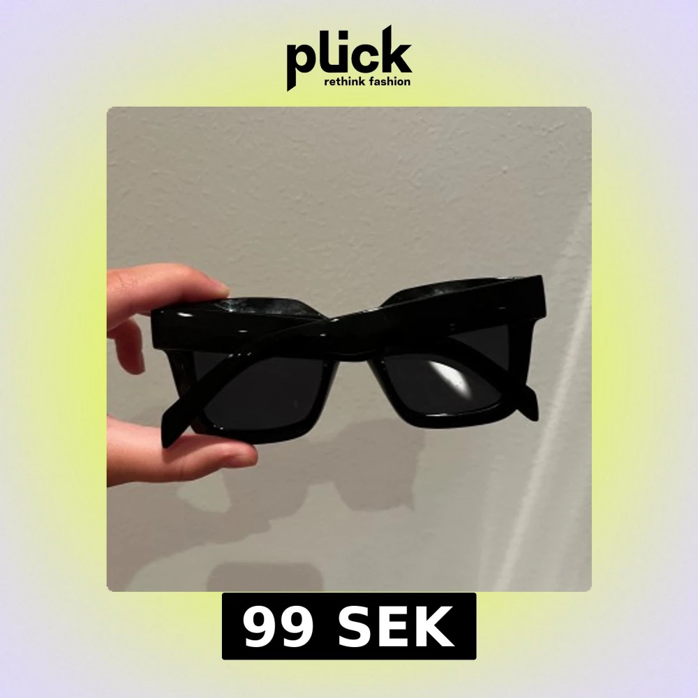 Stilrena svarta solglasögon med bred, fyrkantig båge och mörka glas. Snygg statement-accessoar som ger en cool vibe till din look. Tillverkade i blank plast och passar perfekt för soliga dagar.
