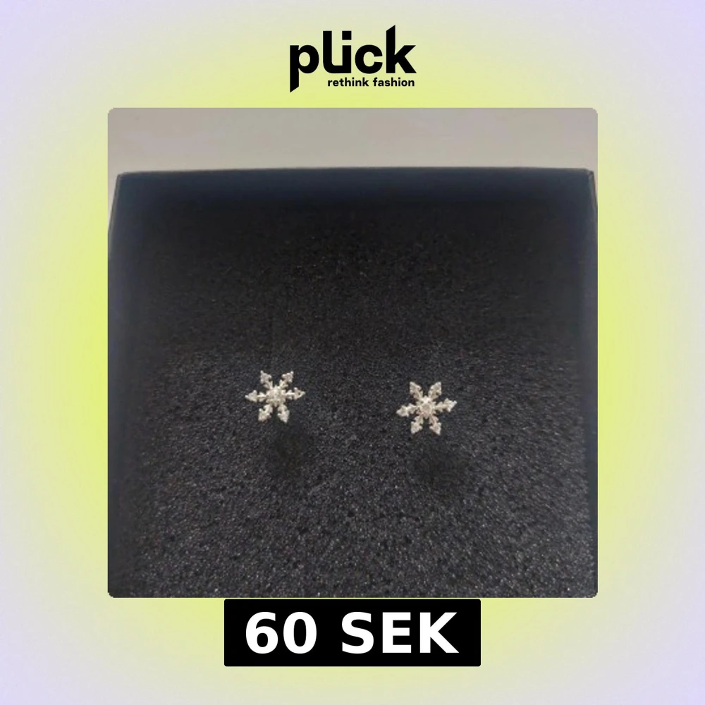 Säljer ett par eleganta örhängen i form av snöflingor. De är tillverkade i silver och har en glittrig yta som fångar ljuset vackert.❄️