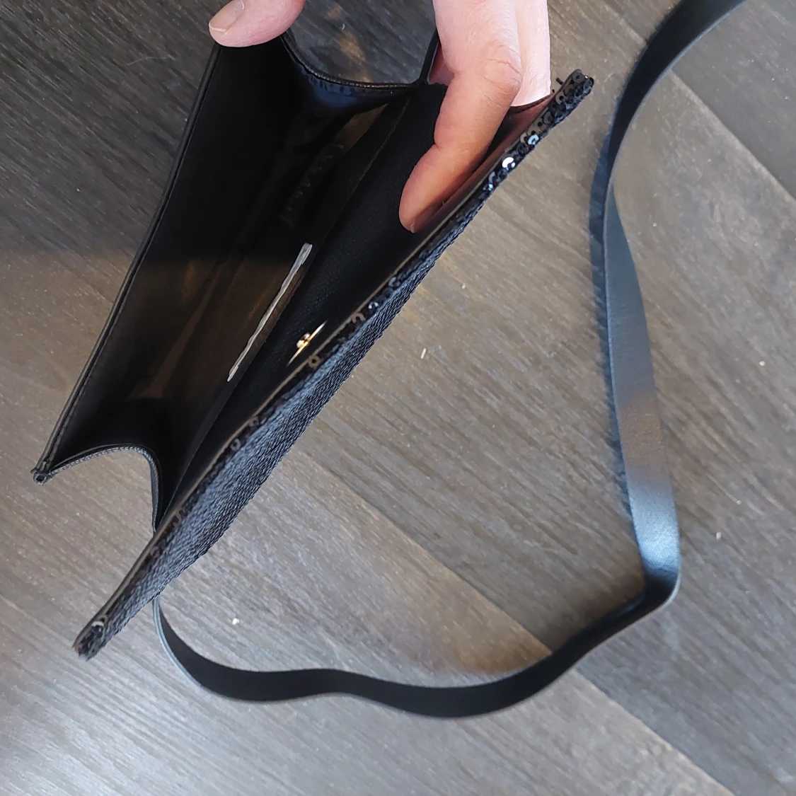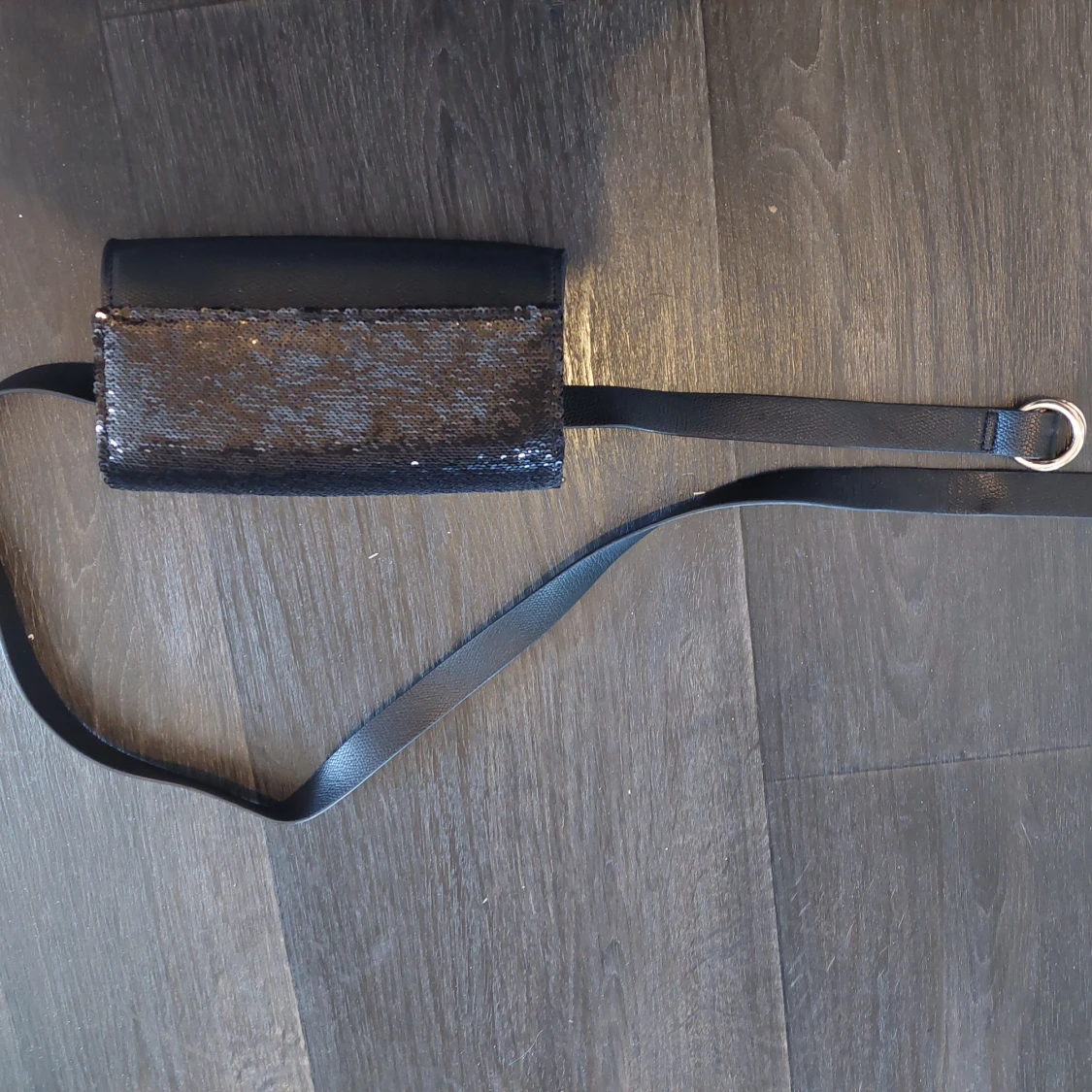 Svart helt ny och oanvänd midjeväska med paljetter på framsidan