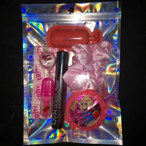 En stor presentpåse som innehåller nyx lipgloss, tuggummi rulle, scrunchie, highlighter, showergel och glitter🥺💕 99kr plus frakt💖 perfekt som present