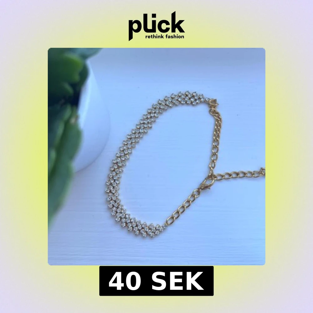Snygg fotlänk i guld med glittrande stenar i ett tätt mönster. Perfekt för att ge en extra touch av glamour till din outfit. Kedjan är justerbar för bästa passform. Önskar du veta exakta mått? Tveka inte att höra av dig!