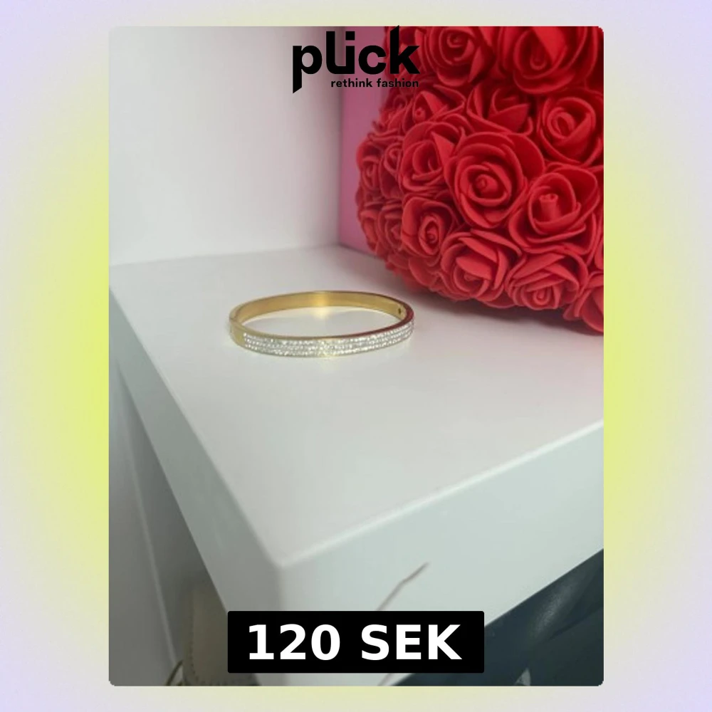 Snyggt armband i guld med glittriga stenar pĂ„ framsidan. Fick i present đ