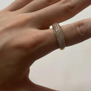 Elegant guldring med glittrande stenar runt hela bandet. Perfekt för att ge en touch av lyx till din stil. Ringen har en klassisk design som passar till många tillfällen. Aldrig använd för utom på bilden då jag inte har på mig guld
