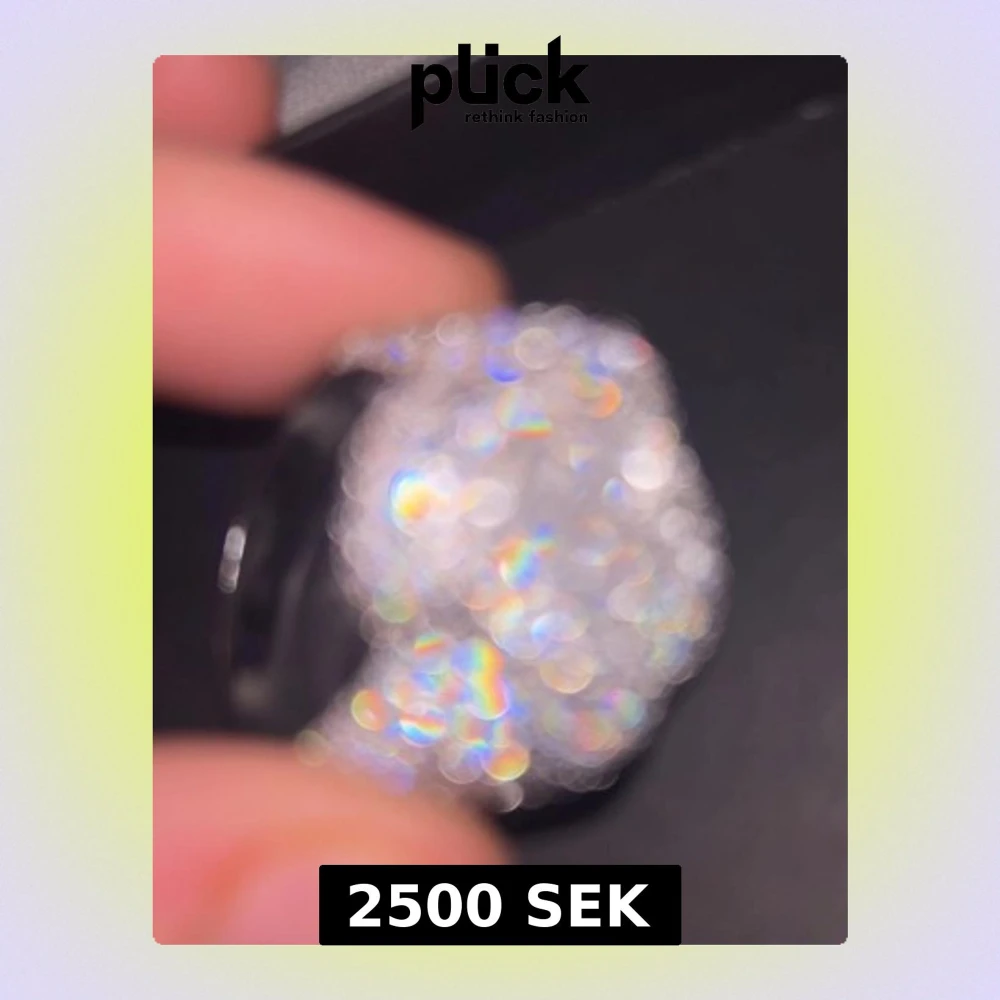 Säljer en platerad silver ring 7 cm den har mossanite stenar och de gör så den blingar väldigt mkt och massor av små stenar som ger en fet regnbågseffekt. Västen har en klassisk form och är täckt av glittrande detaljer som gör den till ett statement-plagg. Perfekt för dig som vill sticka ut och älskar bling.