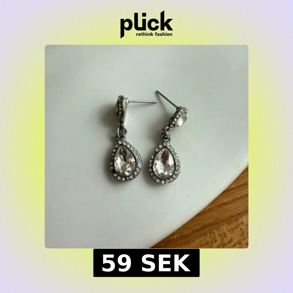 Snygga örhängen i silverfärg med droppformade, klara stenar omgivna av små gnistrande stenar. Perfekt för dig som vill ha lite extra bling och glam i din look. Hängande modell med klassisk stift. Passar dig som gillar att sticka ut.