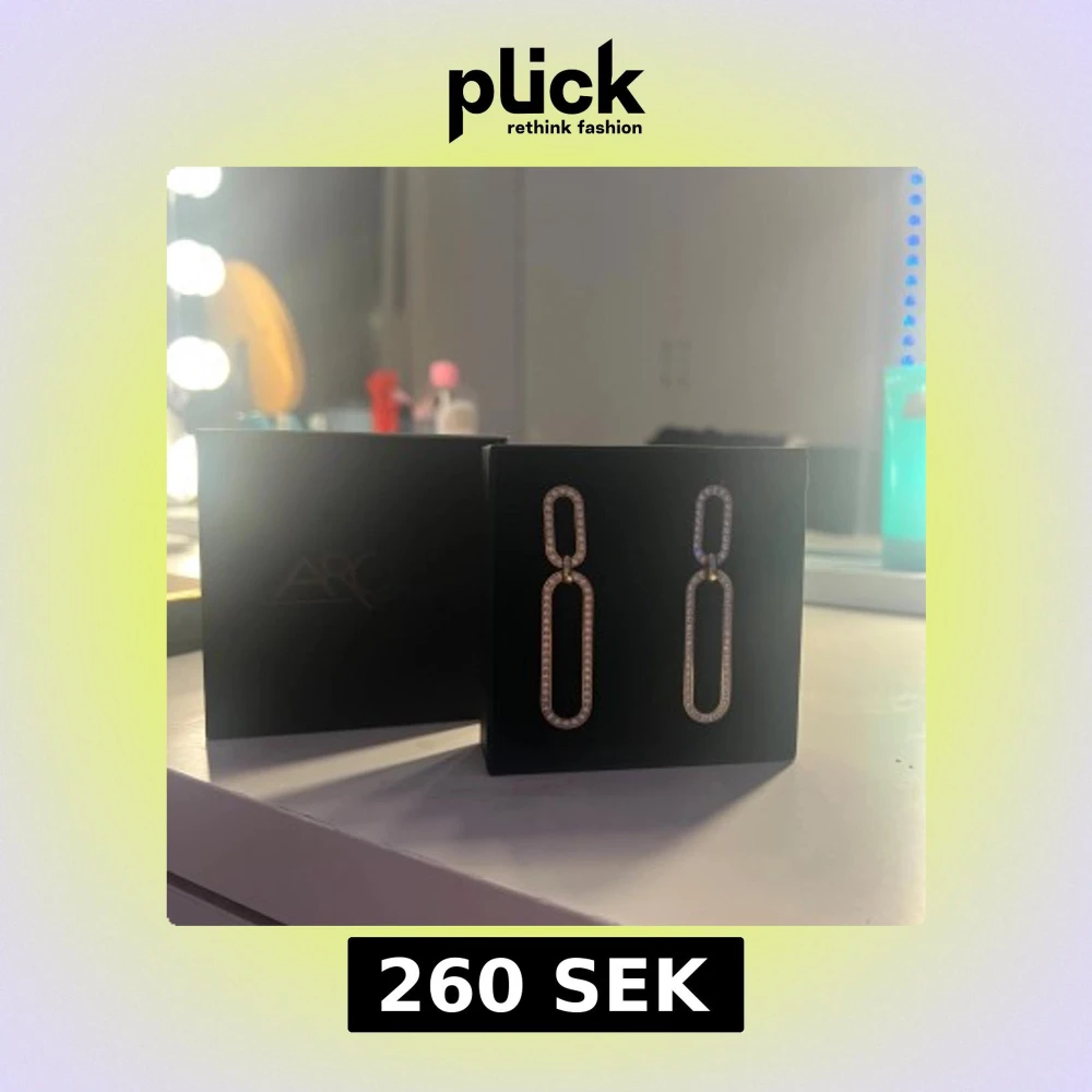 Snygga statement-örhängen i guld från AROCK med rektangulär länkdesign. Örhängena är dekorerade med glittrande stenar längs hela kanten för extra bling. Perfekta för att lyfta din look med lite extra glamour.