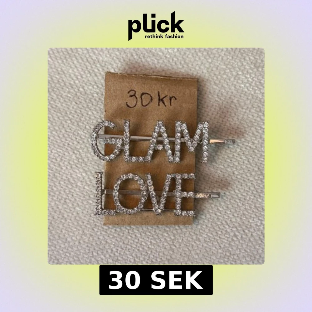 Två hårspännen i silverfärg med gnistrande stenar som bildar orden GLAM och LOVE. Perfekta för att ge din frisyr extra bling och attityd. Stora bokstäver och riktigt iögonfallande design.