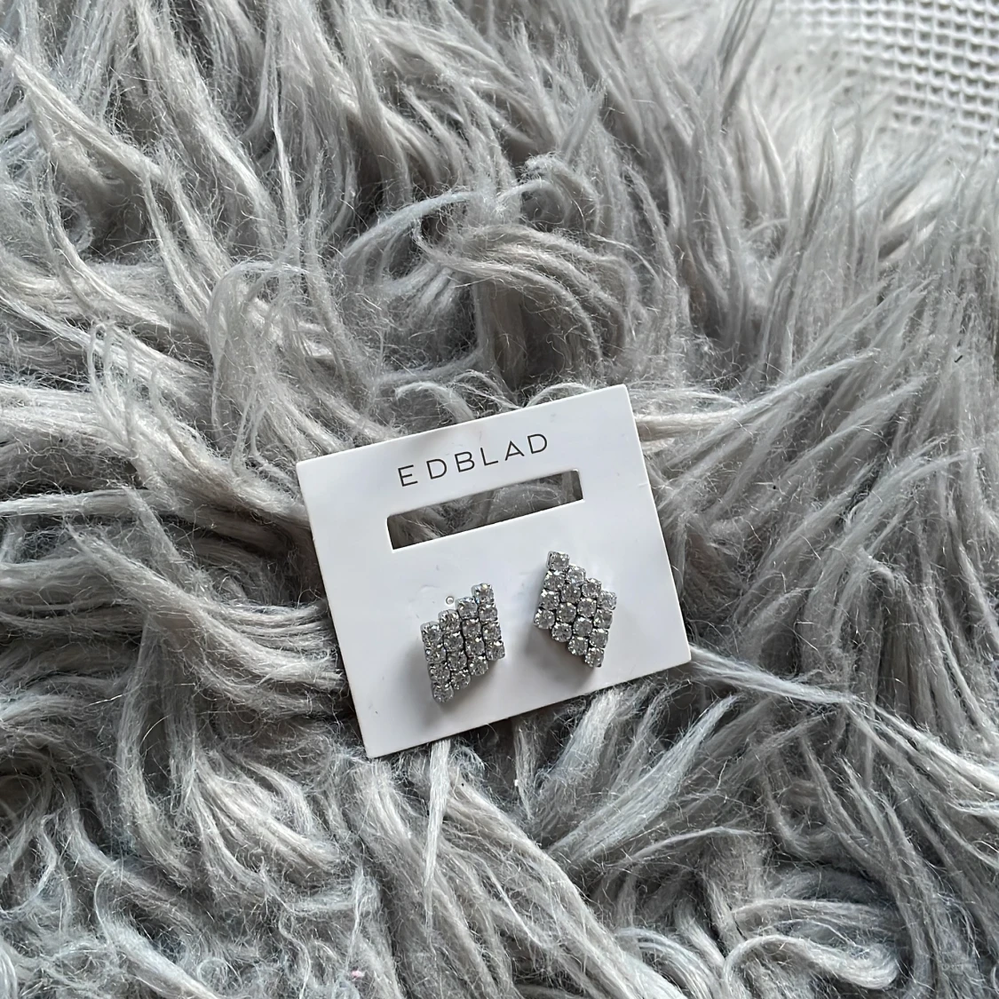 Säljer ett par snygga örhängen från Edblad i rostfritt stål. De är diamantformade och täckta av glittrande stenar som verkligen fångar ljuset. Perfekta för dig som vill ha något som sticker ut och ger extra bling till din look. 💸Är bortttagna från Edblads sortiment och går inte längre att få tag i! 🥂
