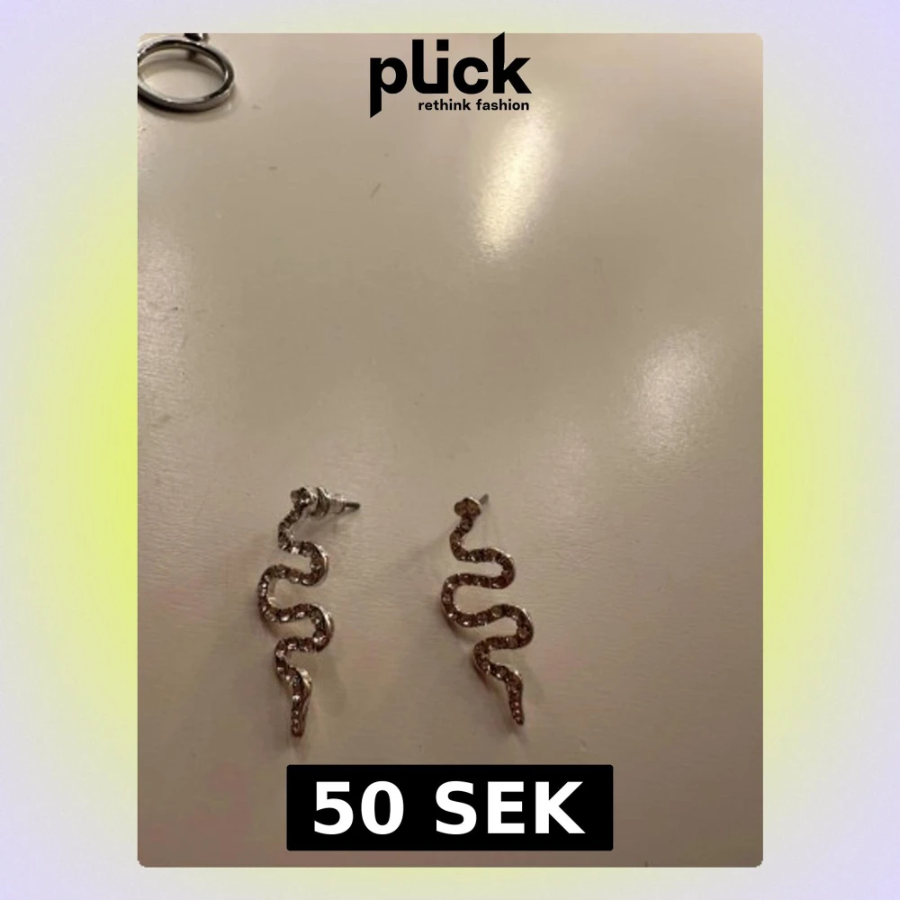 Säljer ett par snygga örhängen formade som ormar, täckta med glittriga stenar. De är silvriga och har en cool, slingrande design som verkligen sticker ut. Perfekta för dig som vill ha något unikt och trendigt i smyckeslådan.