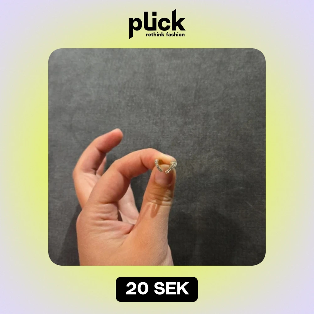 Säljer ett par små, glittriga örhängen i silver. De är formade som halvcirklar och har en gnistrande yta som fångar ljuset fint. Perfekta för att lägga till lite extra bling till din outfit! Passar både till vardags och fest.