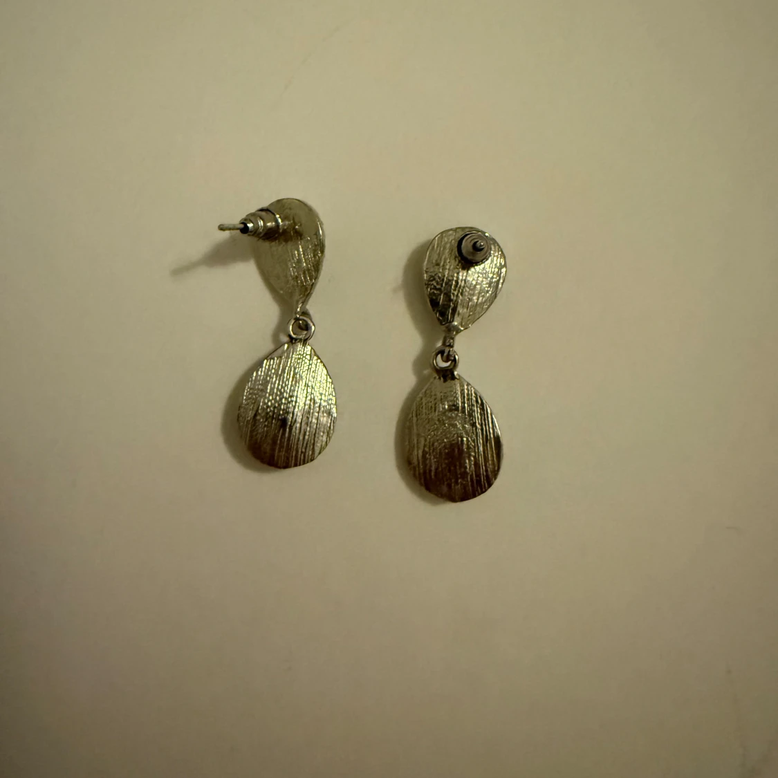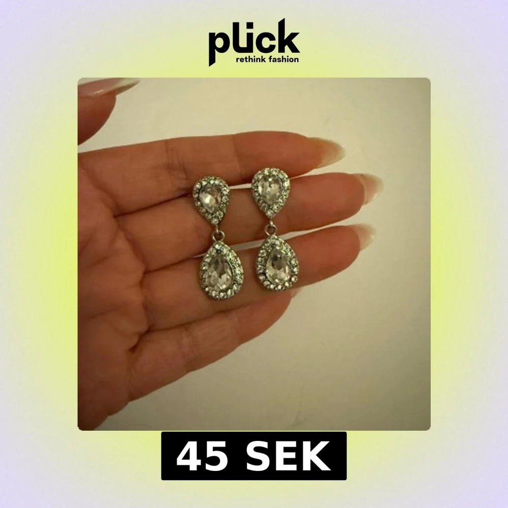 Eleganta örhängen i silverfärg med droppformade stenar omgivna av glittrande detaljer. Perfekta för att ge en lyxig touch till din outfit. De har en klassisk design som passar till många tillfällen.