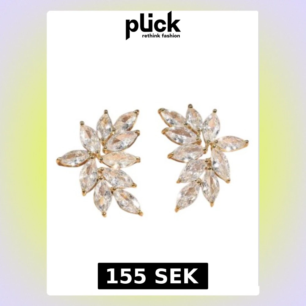 Snygga örhängen i guld med glittrande kristaller formade som blad. De har en elegant och unik design som verkligen drar blickarna till sig. Perfekta för dig som vill ha något extra till din look. Kristallerna är klara och infattade i guldfärgad metall.