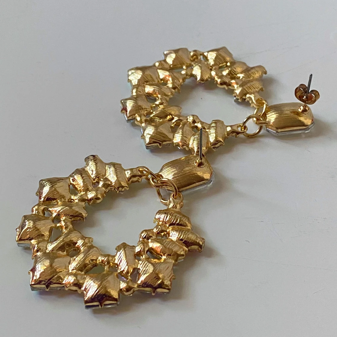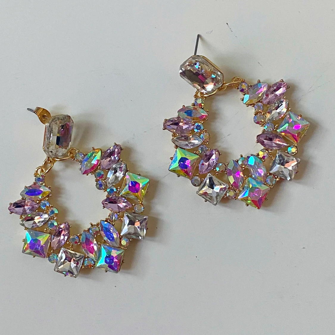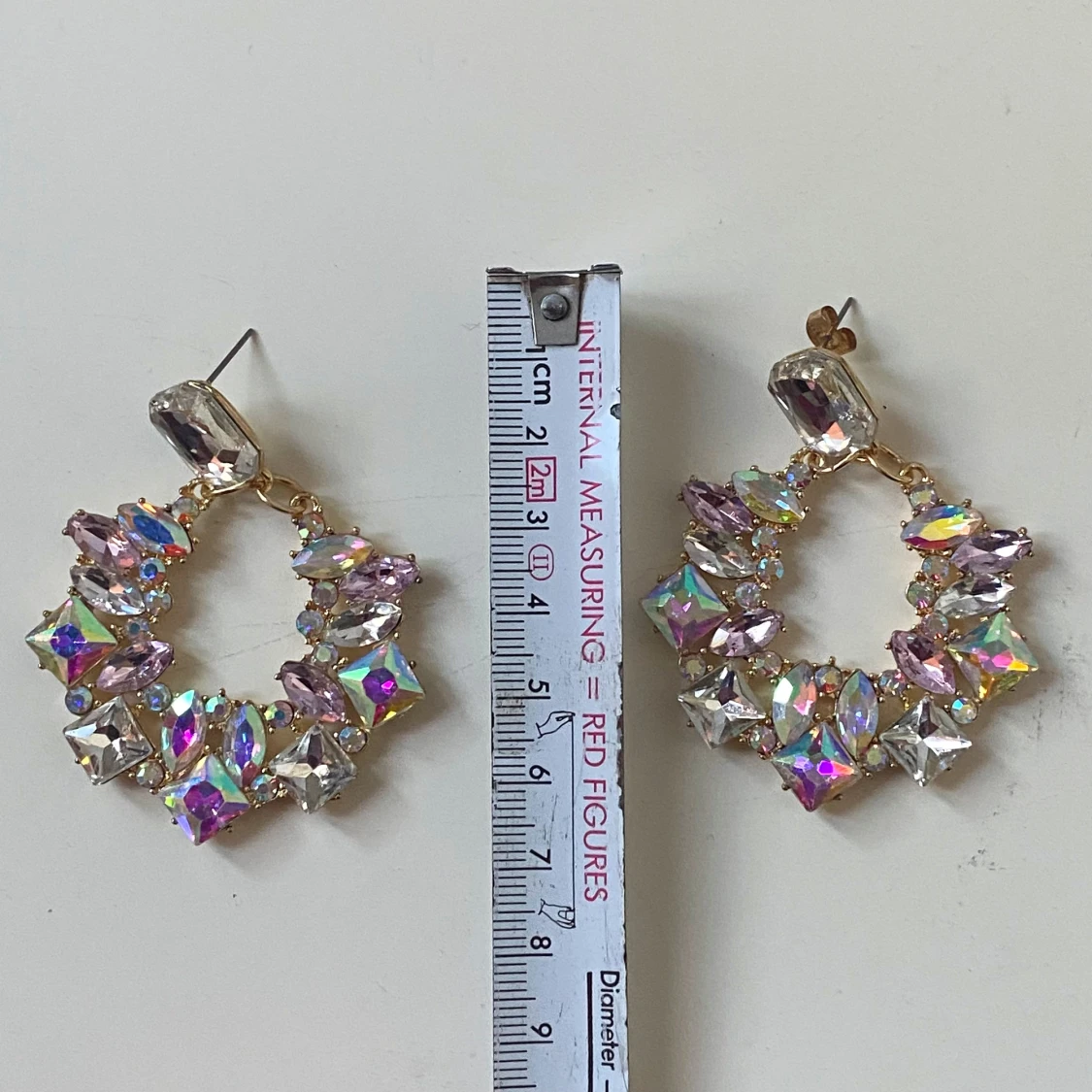 Superfina stora örhängen i rund form med gnistrande kristaller i lila, rosa och silver på guldfärgad metall. Kristallerna är slipade i olika former och ger ett riktigt glittrigt intryck. Perfekta för att sticka ut och ge din look extra wow-faktor.