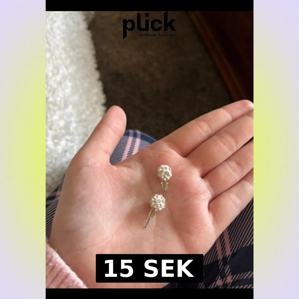Säljer ett par snygga örhängen i silverfärg med rund form och glittriga detaljer. De är små och diskreta men ändå riktigt blingiga, perfekta om du vill ha något som syns lite extra. Passar dig som gillar stilrena accessoarer med lite sparkle.