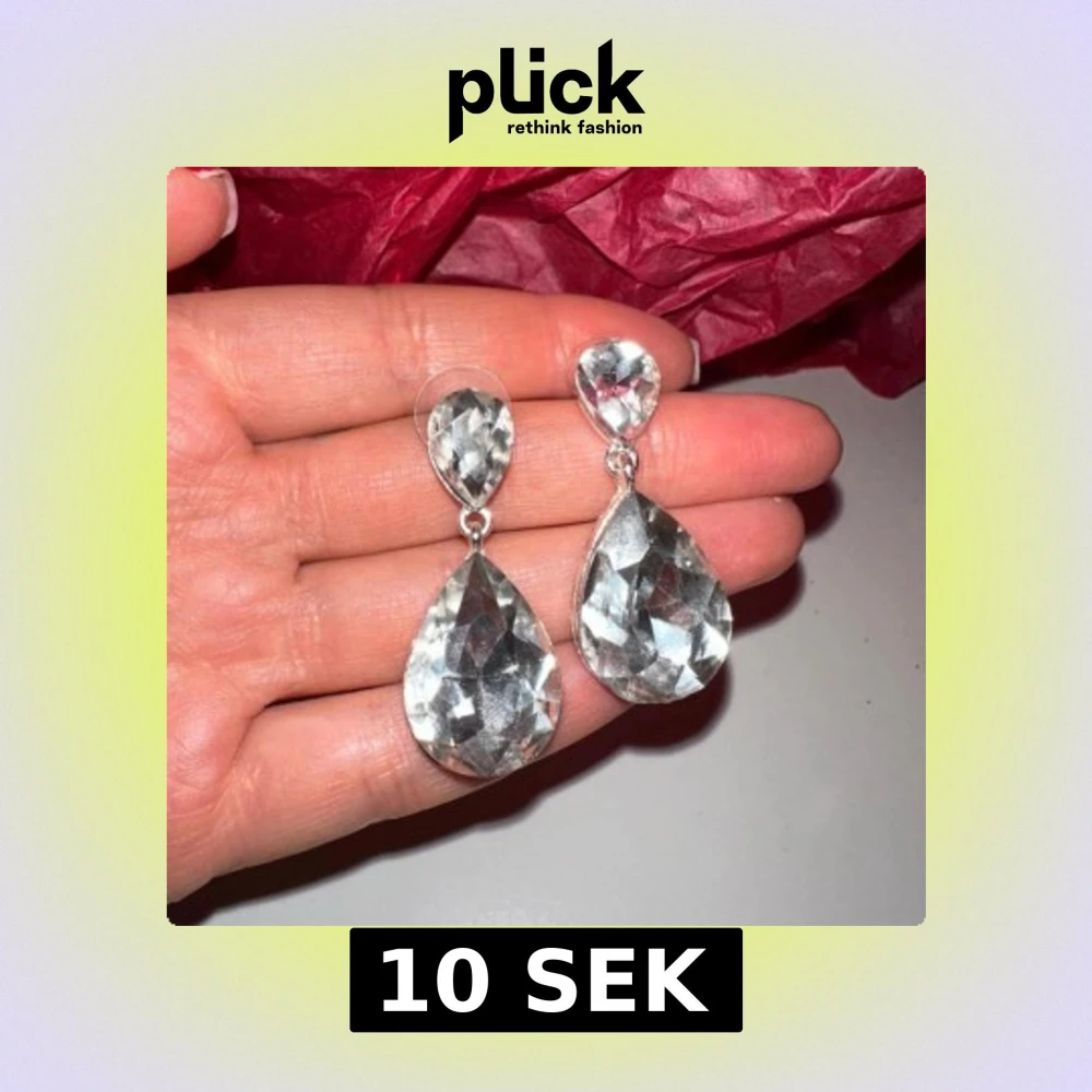 Snygga och glittriga örhängen i silver med stora droppformade kristaller. Perfekta för att ge en extra touch av glamour till din outfit. De har en elegant design som fångar ljuset vackert.