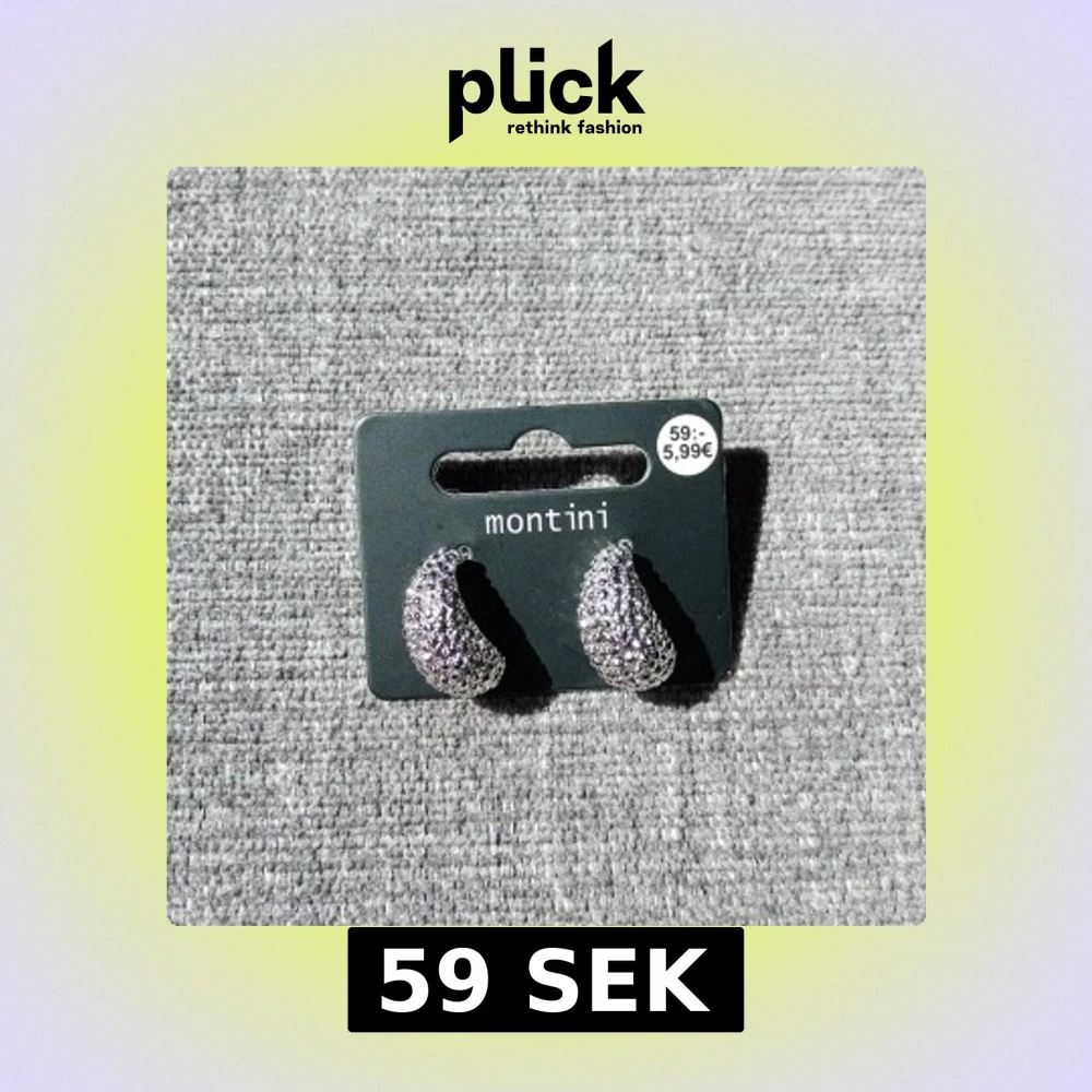 Säljer ett par chunky silvriga örhängen från Montini med glittrig yta och cool struktur. De är halvbågsformade och riktigt statement, perfekta för att lyfta vilken outfit som helst. Snygga och trendiga örhängen för dig som gillar att sticka ut.