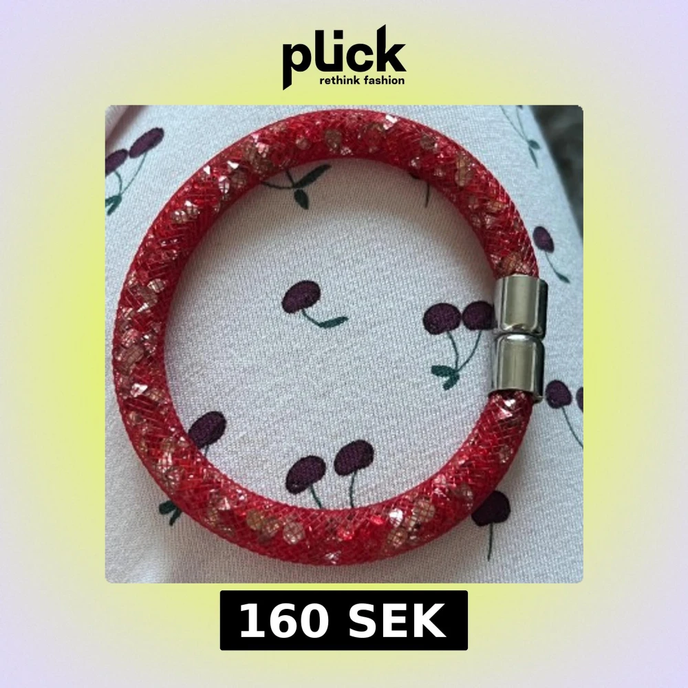 Snyggt armband i röd färg med glittriga detaljer och ett smidigt magnetlås i silverfärg. Armbandet har en rund form och är täckt av ett nätmönster som ger extra bling. Perfekt för dig som gillar att sticka ut med accessoarer.