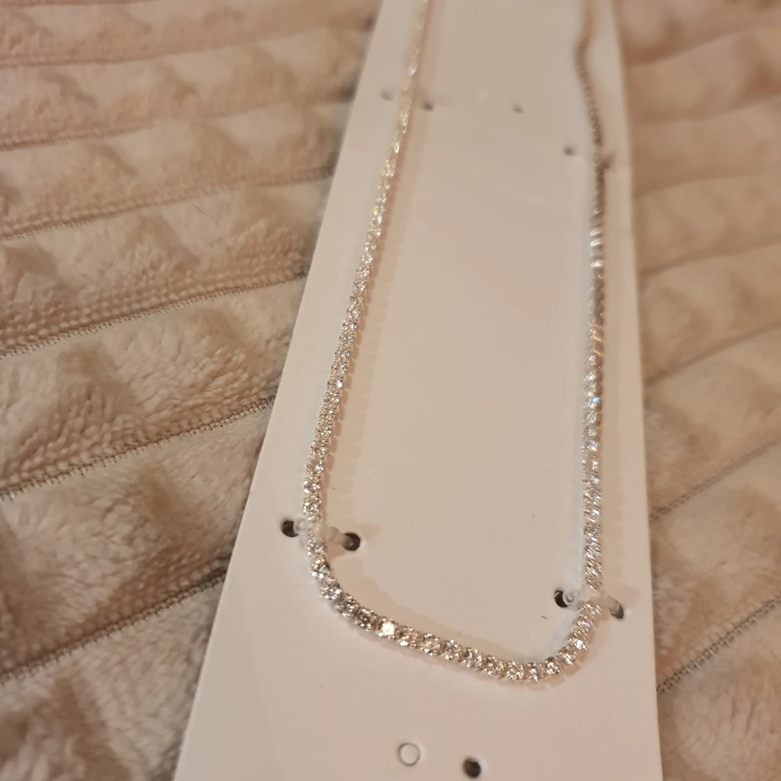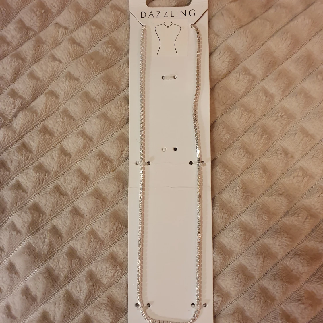 Ett nytt snyggt halsband från Dazzling i silverfärg med glittrande stenar längs hela kedjan. Nickelfritt.
