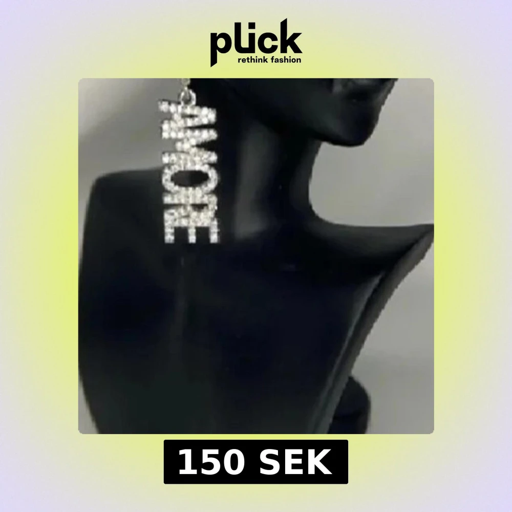 Säljer ett statement örhänge med texten 'AMORE' i stora bokstäver täckta av glittrande stenar. Perfekt accessoar för dig som vill sticka ut och sprida kärlek med din stil. Finns även i babe Love och Dream obs skriv innan ni köper💗kan även posta utanför plick så slipper man betala så mkt frakt💗