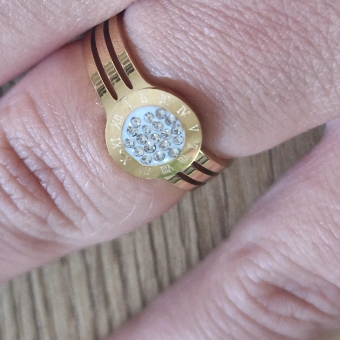 Jätte fint set med örhängen, ring, halsband o armband. Stl 18 ring, 45 halsband 16,5-18 armband. Rostfrittstål, missfärgar inte, går duscha o bada med.