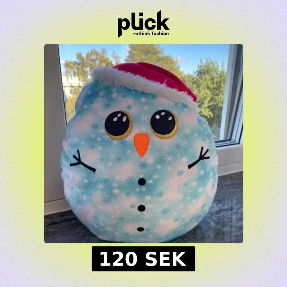 Säljer ett gosedjur med tomteluva med vit fluffig kant. Gosedjuret har en mjuk och rund form, perfekt som present till någon annan eller att ha för sig själv. Materialet är syntet och den färgen gör den extra festlig till jul.