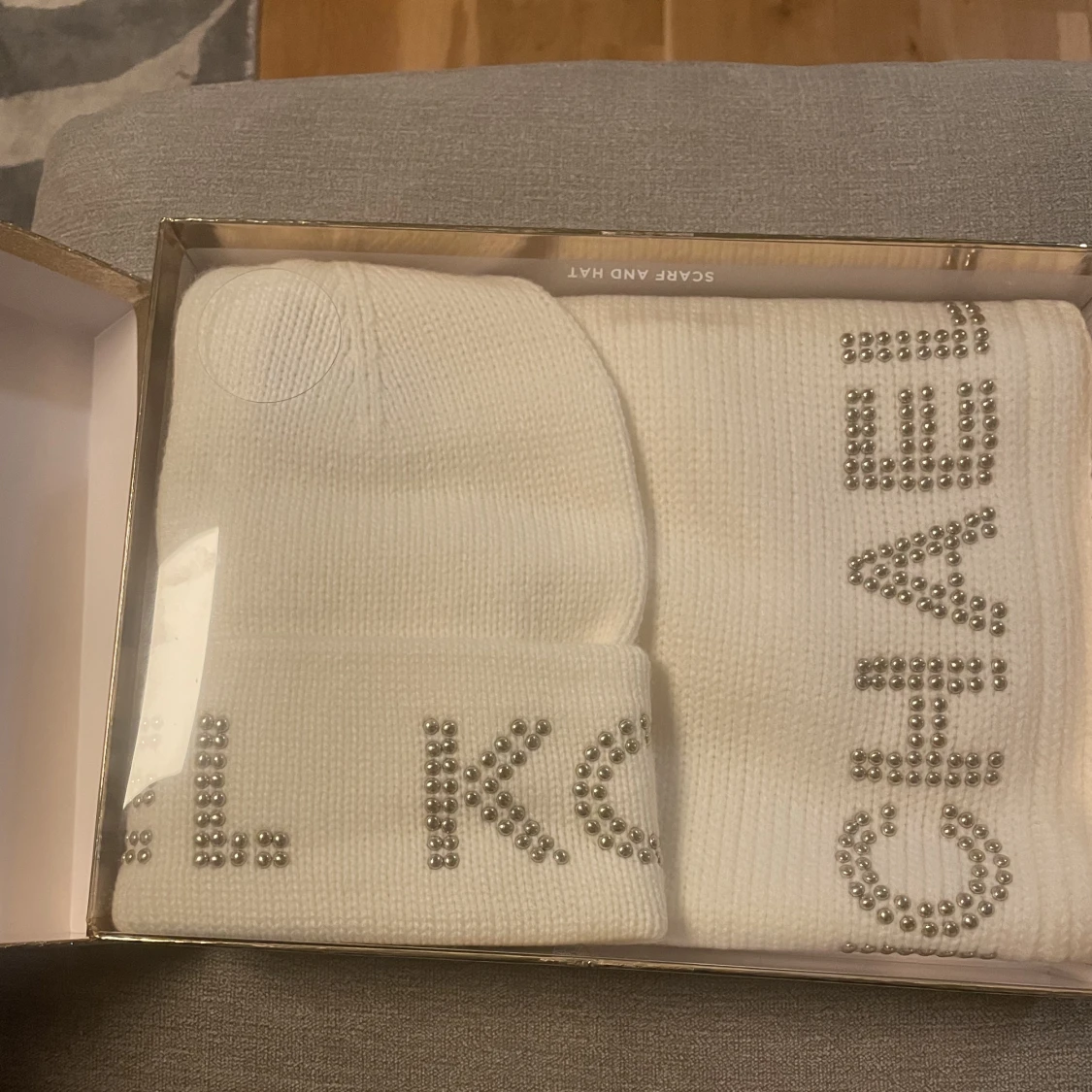 Väldigt fin mössa och halsduk, helt oanvända och kvar i lådan🎁. Perfekt nu inför hösten🍂. Säljer för att jag redan har en annan. Perfekt som present till någon som ofta fryser😉🫶🏼