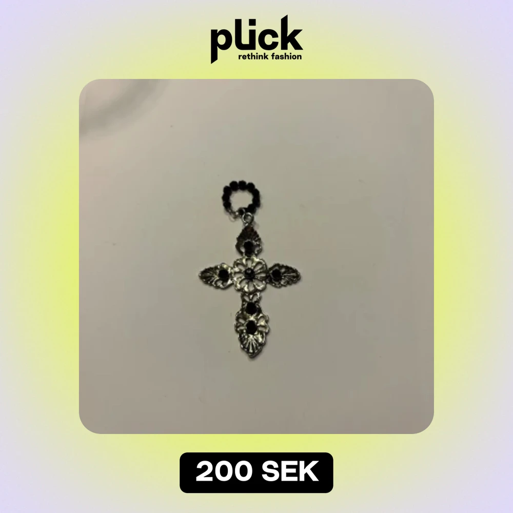 Cool snygg berlock. Ett silvrigt kors med svarta detaljer. Lite goth, y2k stilđ„°
