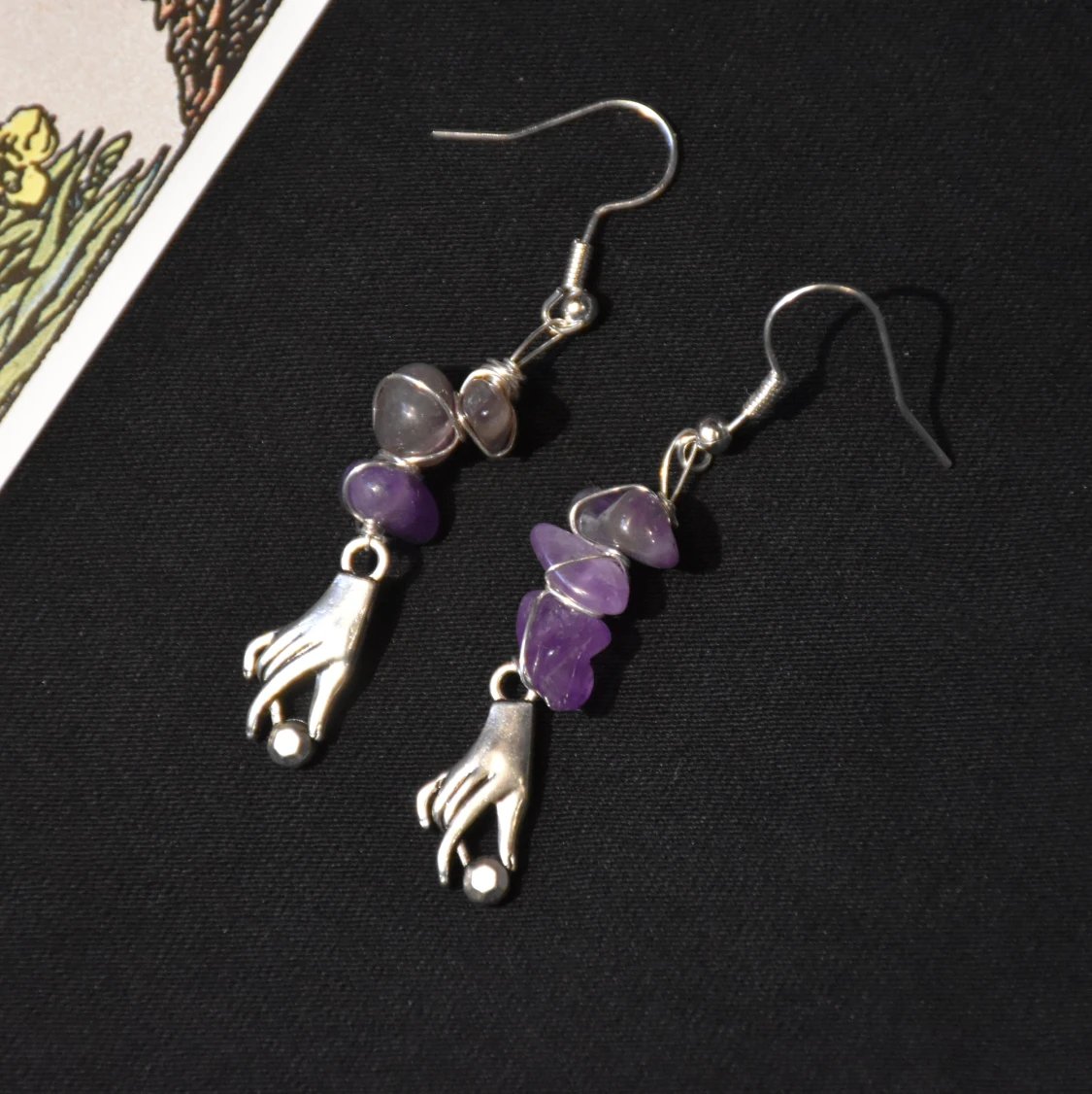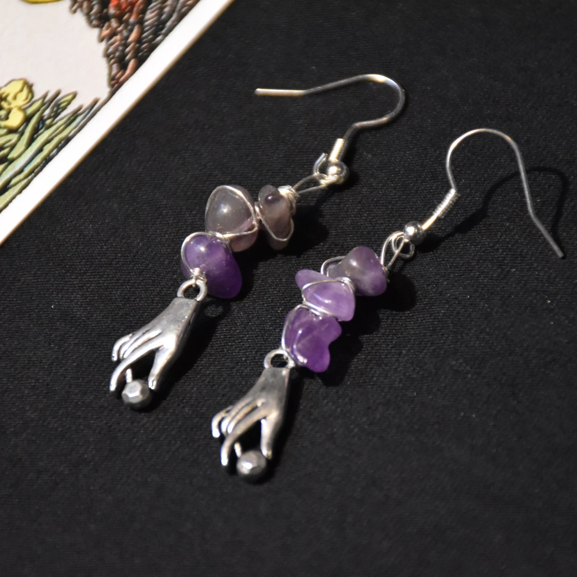 Örhängen med händer och ametist. Krokarna är nickelfria.
