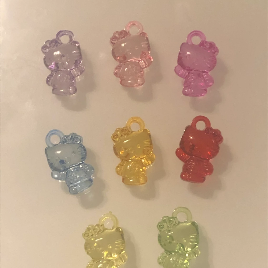 Super gulliga y2k hello kitty örhängen/ halsband i många olika färger som rosa, röd, gul, orange, lila, blå, grön och mörk rosa✨ frakt 11kr 💕💕💒