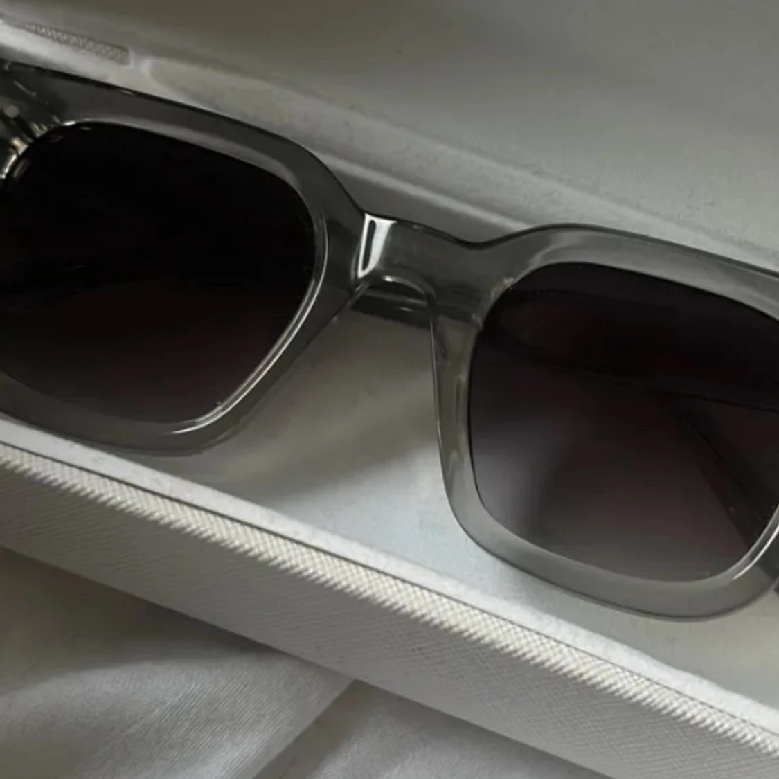 Snygga solglasögon me grå båge och mörka glas. De har en trendig, fyrkantig form och passar perfekt som accessoar till din outfit. Kommer i ett stilrent fodral. chimi 04 gråa