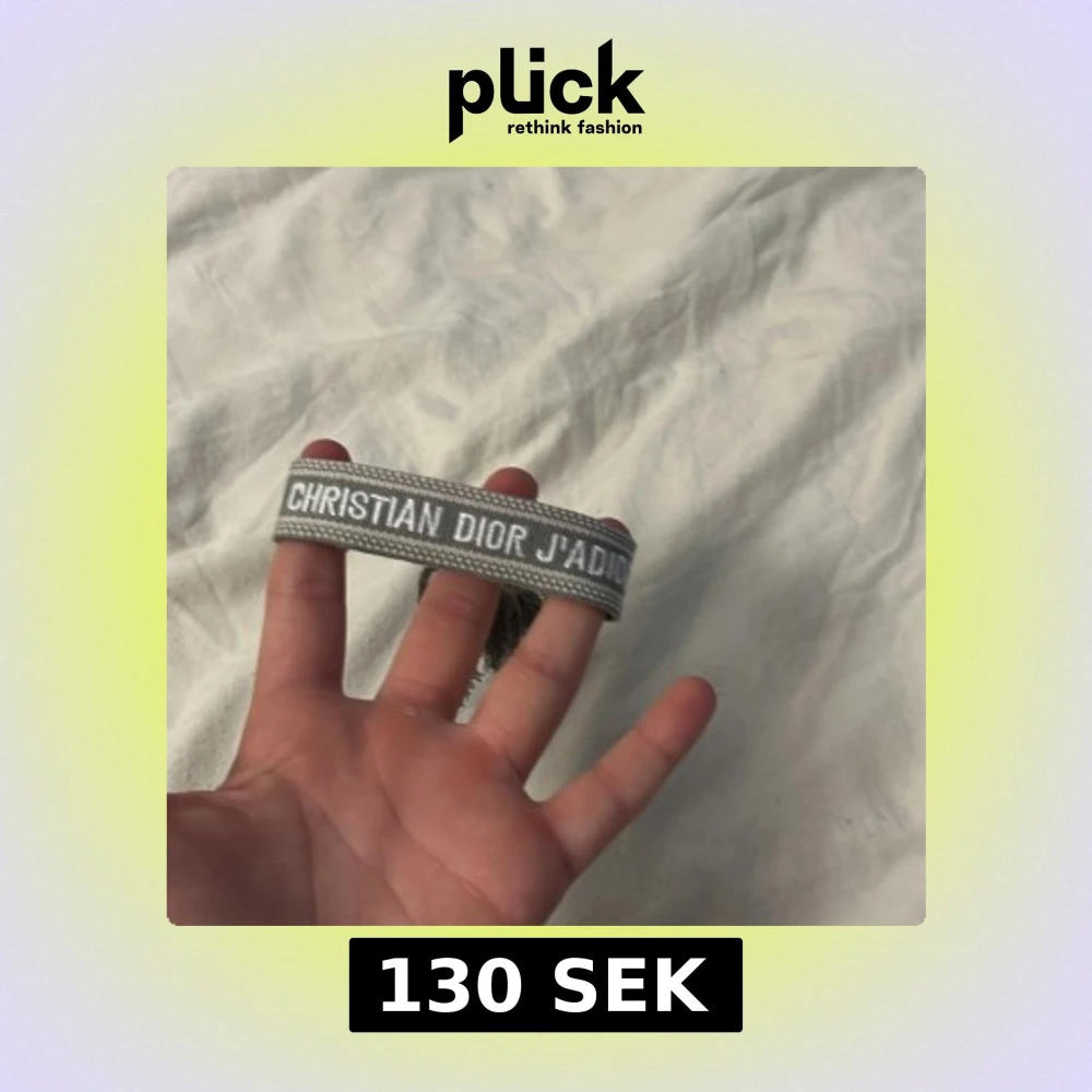 Snyggt grått armband från Christian Dior med texten 'J'Adior' broderad i vitt. Armbandet har flätade band med tofsar i ändarna och är gjort i ett mjukt tygmaterial. Perfekt accessoar för att lyfta din outfit med lite lyxig vibe.