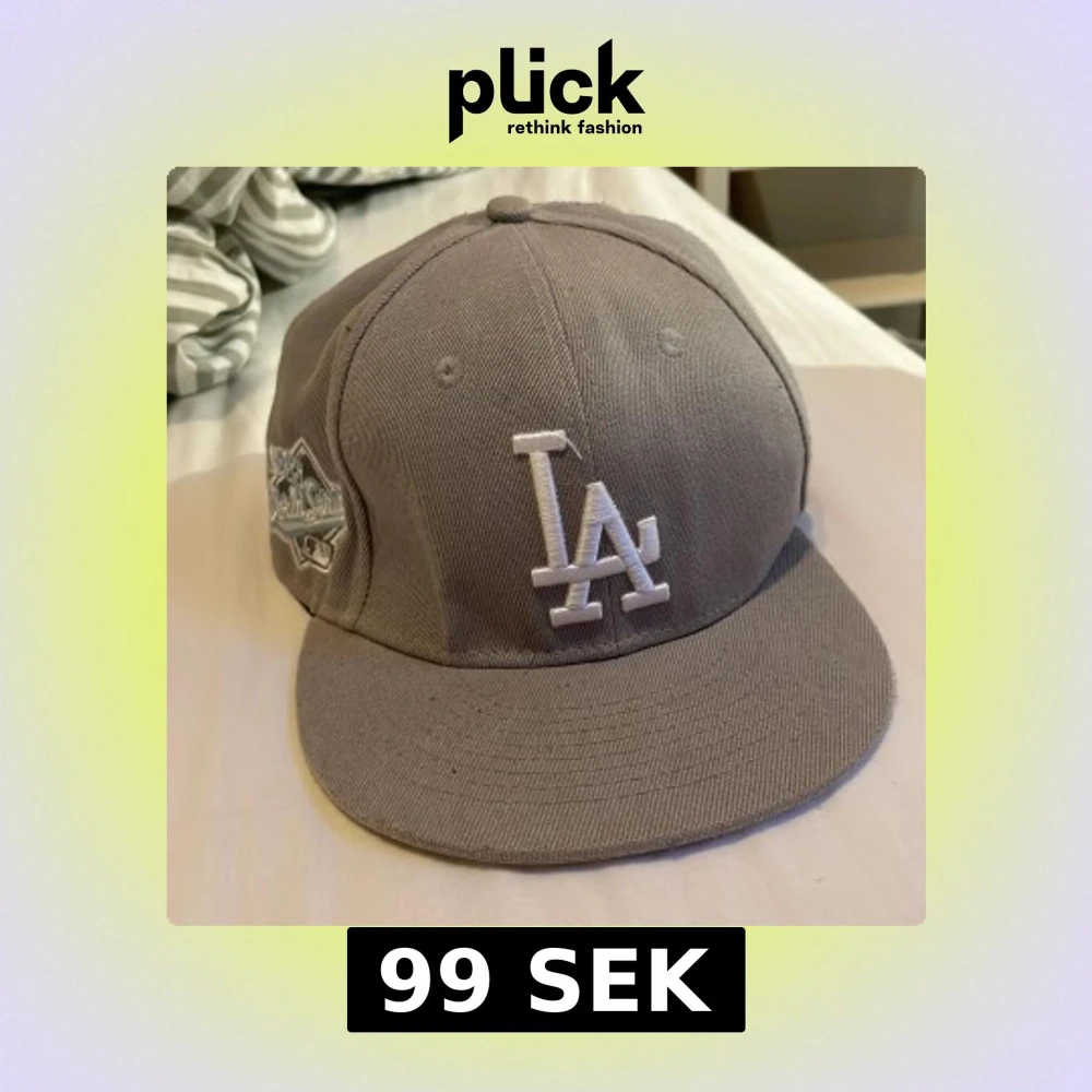 Snygg grå LA Dodgers keps från New Era 59FIFTY med vit broderad LA-logga framtill och patch på sidan. Klassisk rak skärm och äkta MLB-merch. Perfekt för dig som gillar streetstyle och sportig vibe.