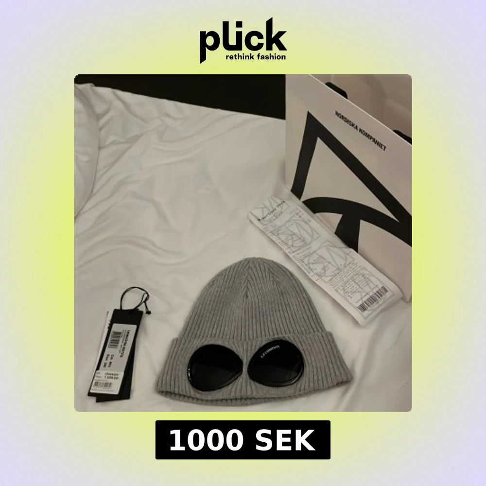 Snygg grå ribbad mössa från C.P. Company med inbyggda glasögon. Perfekt för att ge en unik stil till din outfit. Mössan är tillverkad i bomull och har en modern design. Köpt från NK i Stockholm.